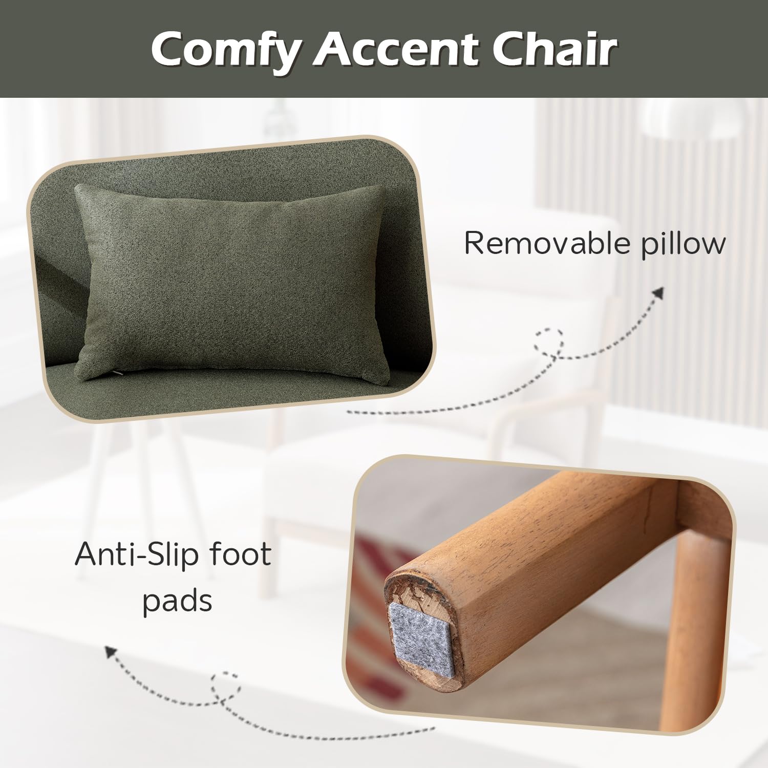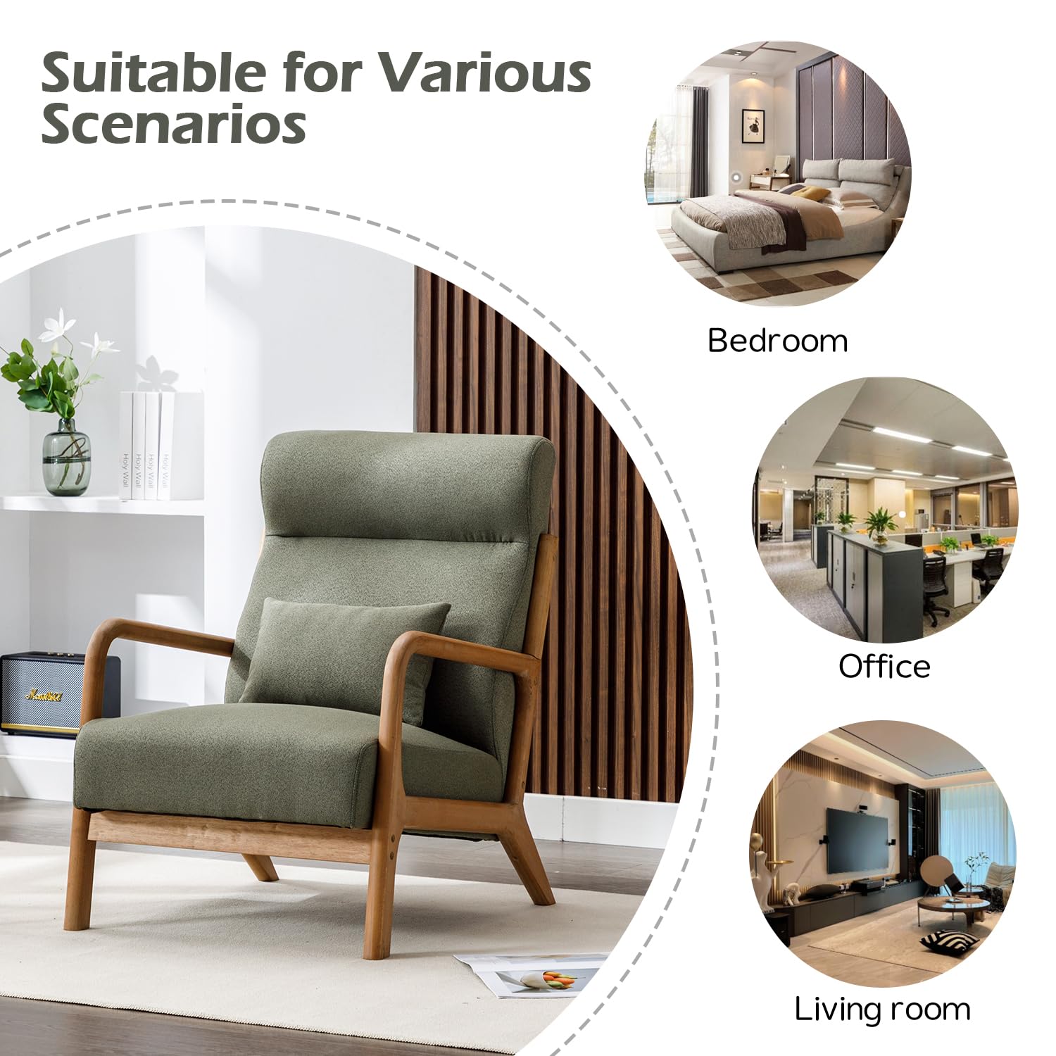 This mid-century modern accent chair combines timeless design with exceptional comfort, perfect for creating a relaxing retreat in any room. The high-density sponge cushioning provides superior support for extended sitting, whether you're reading, napping, or unwinding after a long day.