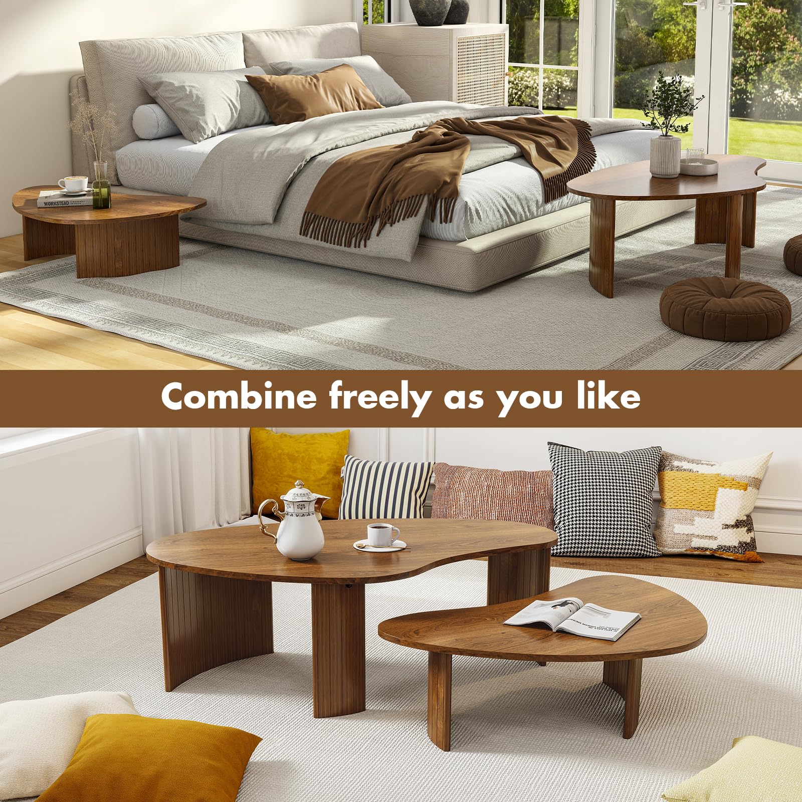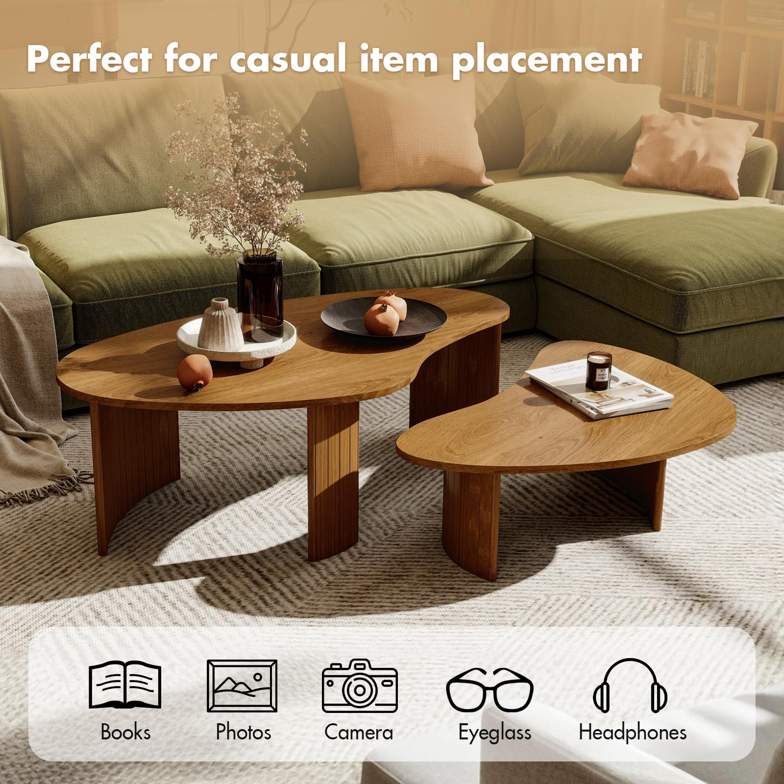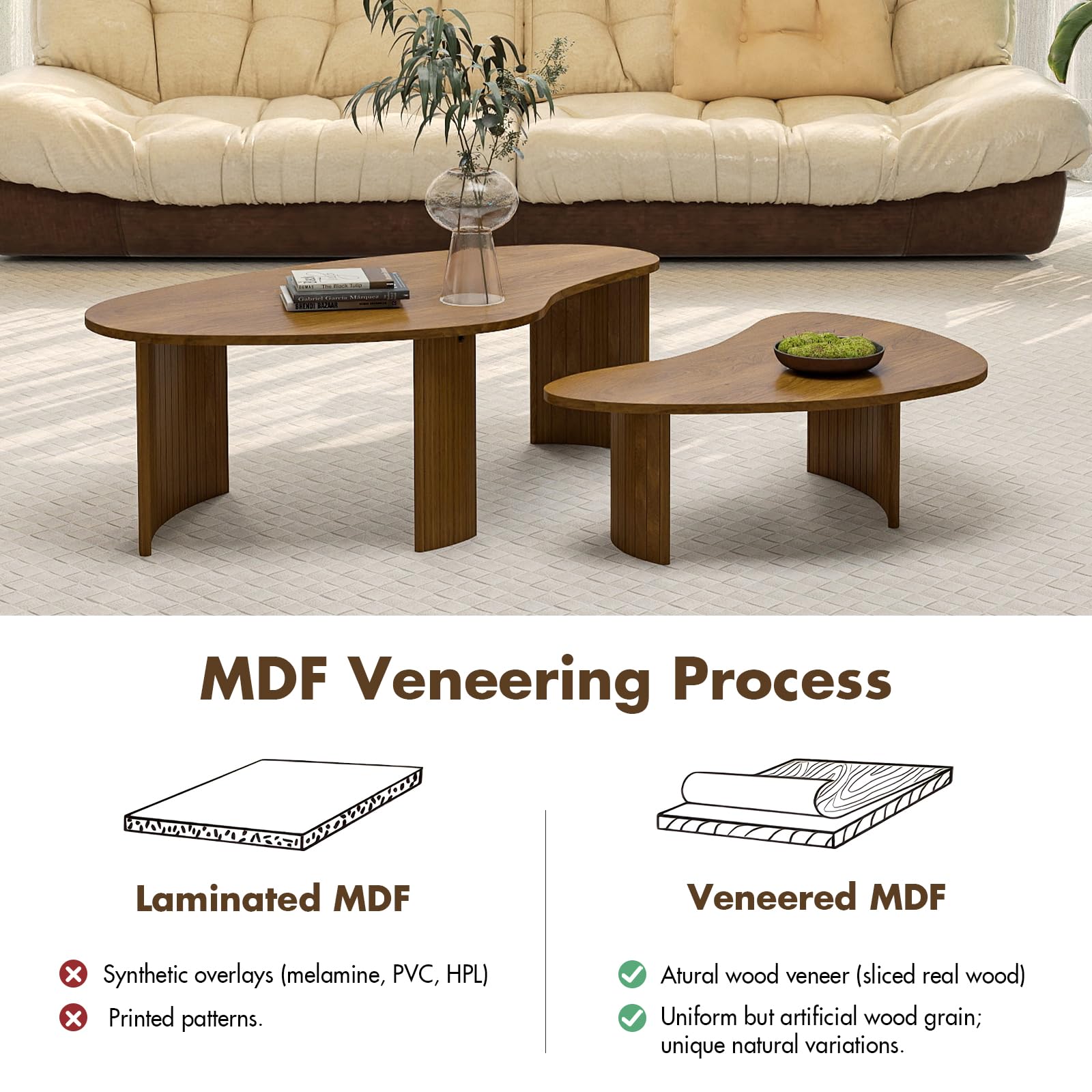 Elevate your living space with this elegant nesting coffee table set. Featuring a sophisticated wood grain veneer finish and distinctive fluted design, these tables combine mid-century modern aesthetics with farmhouse charm.