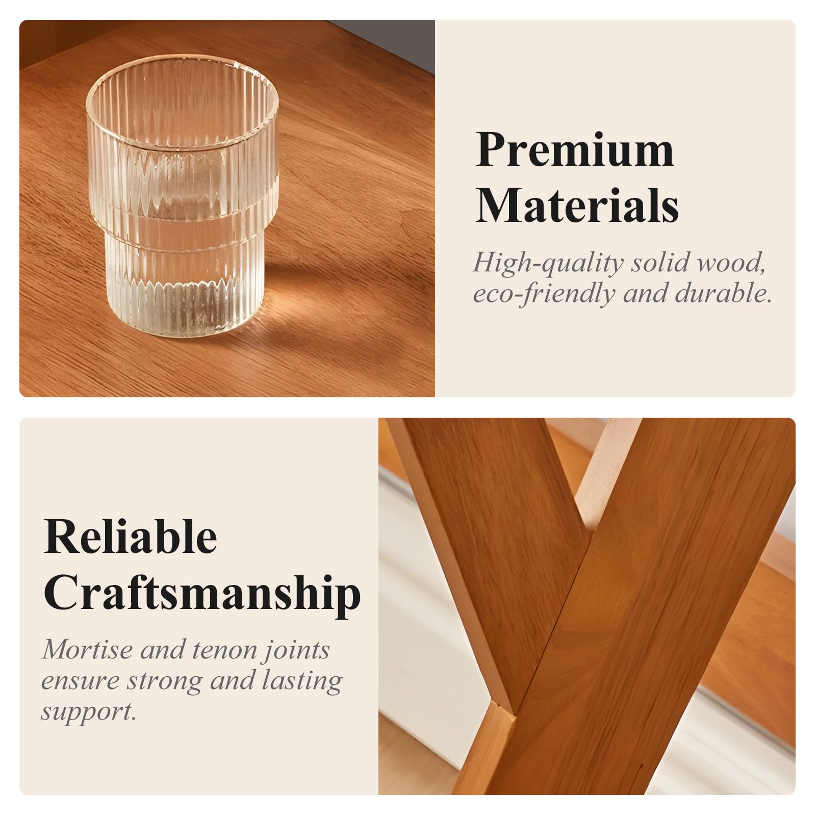 - Traditional mortise-and-tenon joints that strengthen with use
