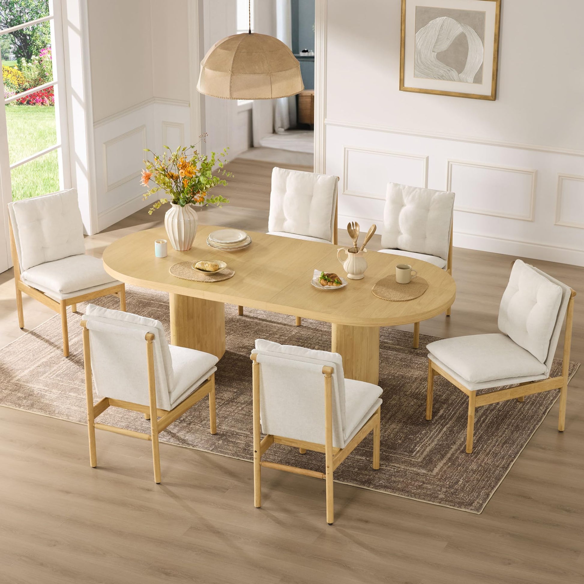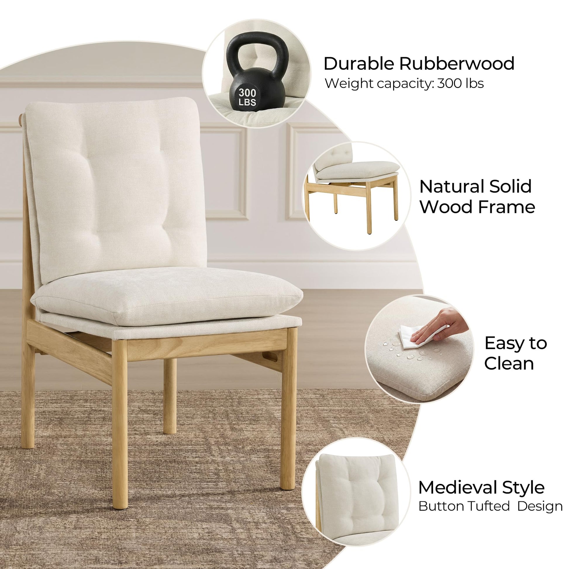Elevate your dining space with this set of 2 mid-century modern dining chairs. Featuring FSC-certified rubberwood legs and plush chenille linen upholstery, these kitchen chairs combine timeless design with exceptional comfort. The padded seats provide superior support for extended dining experiences, while the clean lines and elegant silhouette complement any contemporary or traditional decor.
