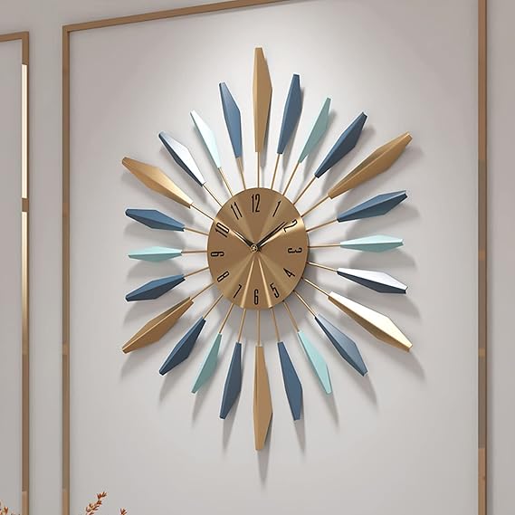 This mid-century modern wall clock combines fashion-forward design with practical functionality. Featuring a stunning sunburst silhouette, this oversized timepiece serves as both an accurate clock and a striking decorative accent for any room.
