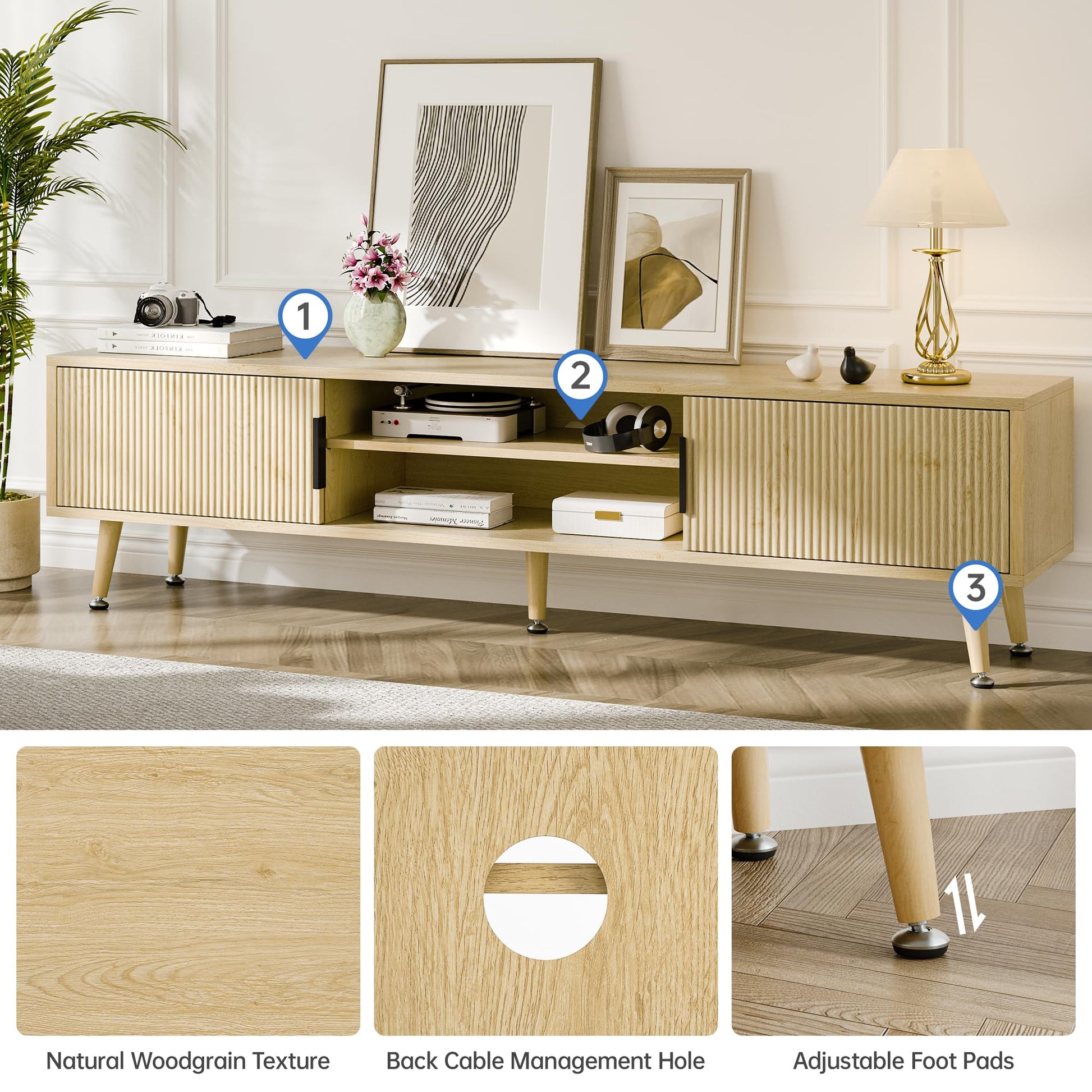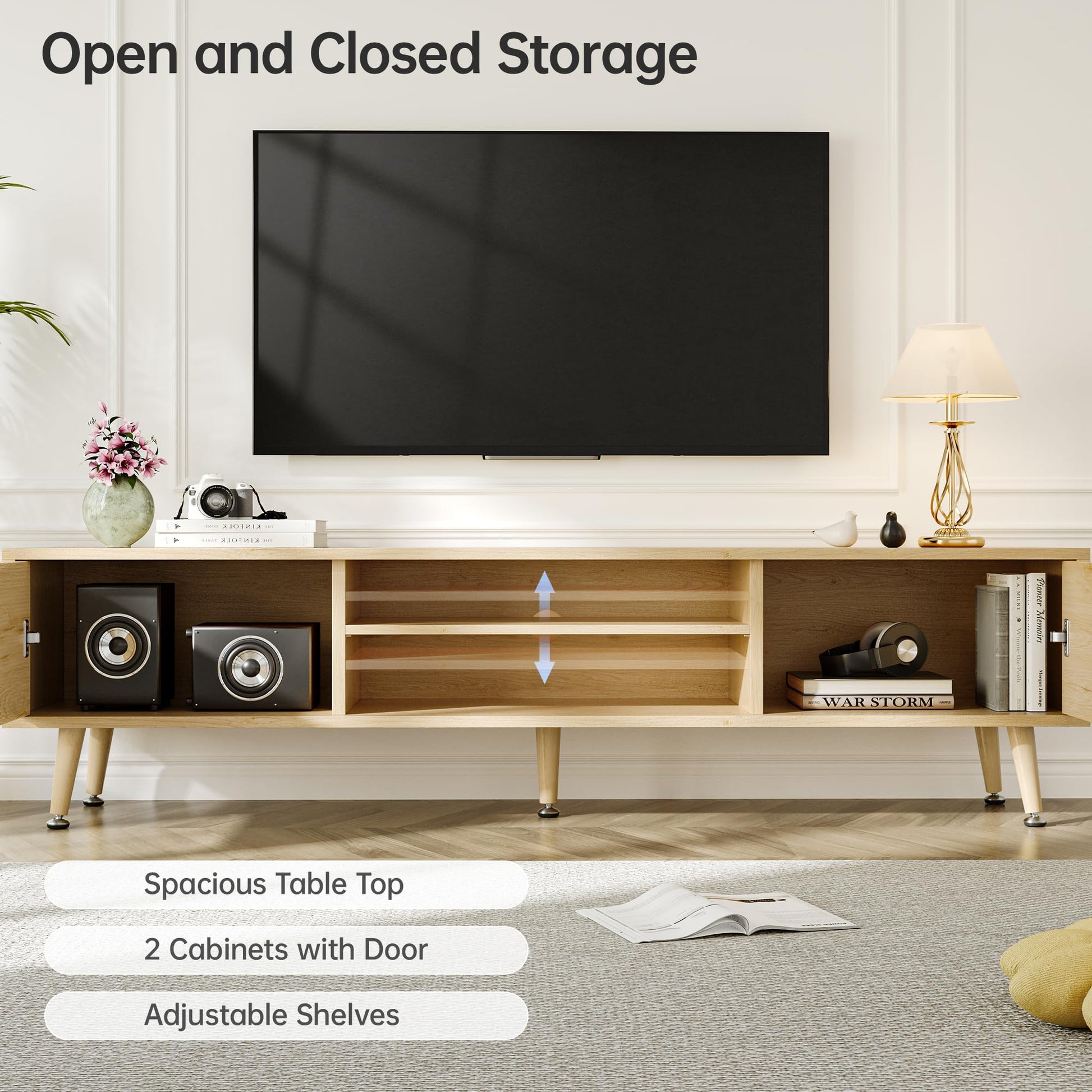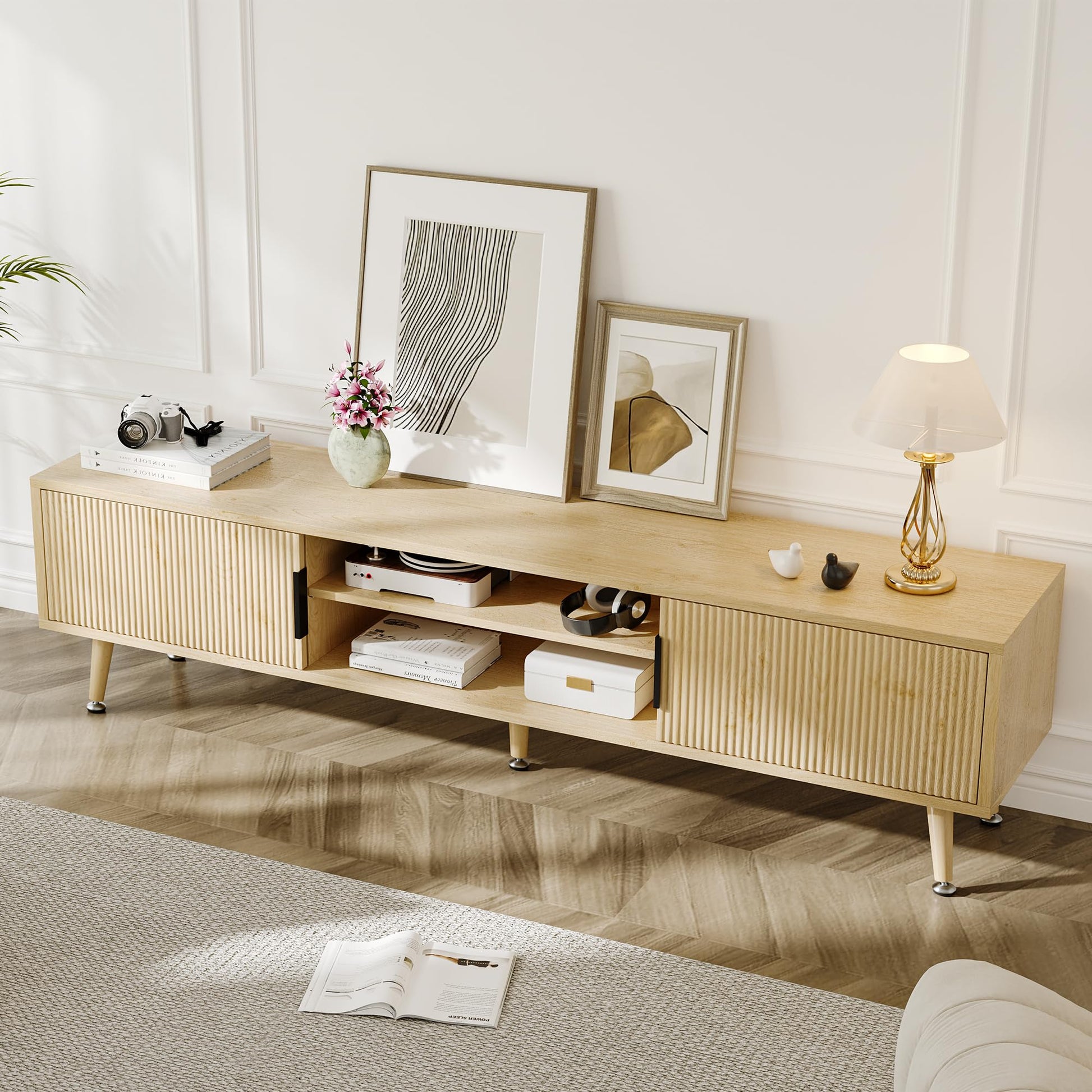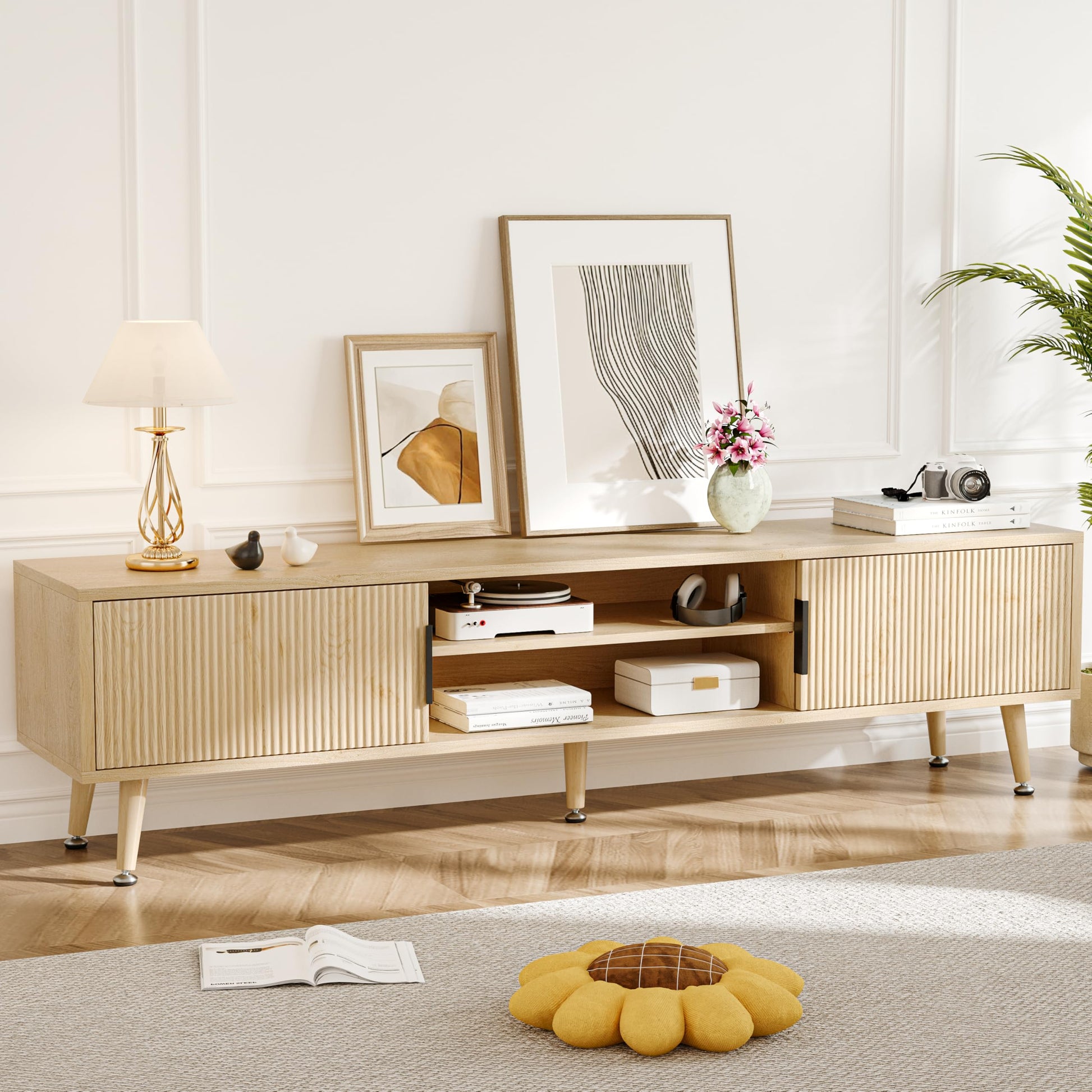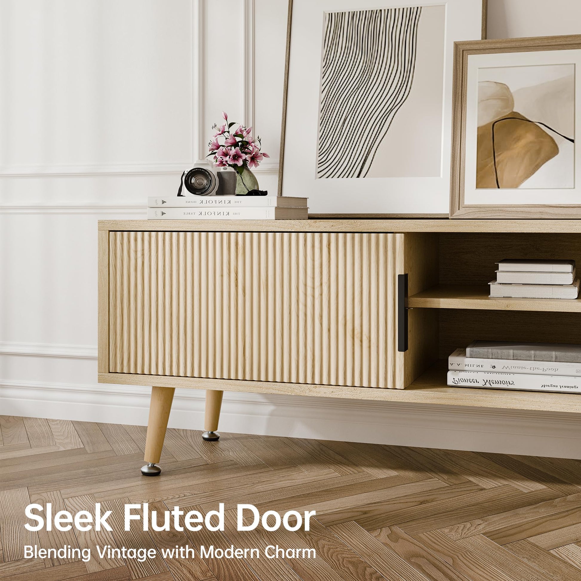 This mid-century modern TV console combines timeless design with practical functionality, perfect for organizing your entertainment space. The oak finish brings warmth and sophistication to any living room.