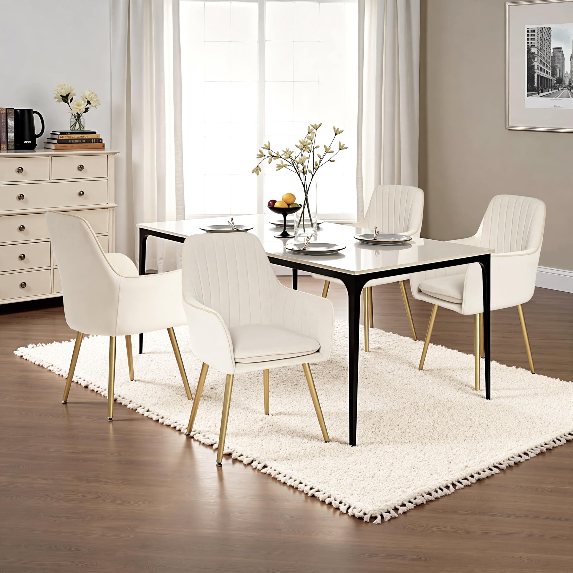 Elevate your dining space with this sophisticated set of two mid-century modern dining chairs. Featuring plush velvet upholstery and sleek metal legs, these versatile accent chairs bring both comfort and style to your kitchen, living room, or dining area.