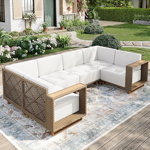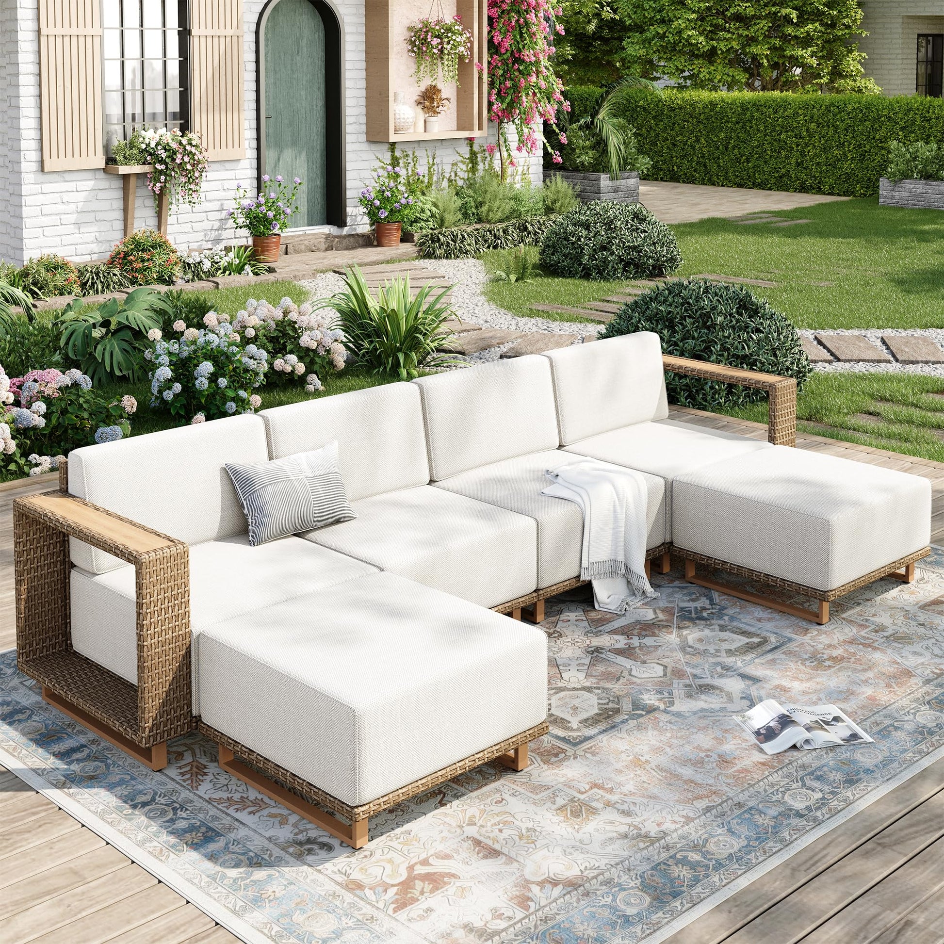 - Casual Modular Design 6-Piece Set: This patio furniture set includes 4 pieces sofas and 2 ottomans, offering flexibility and a variety of layout combinations. You can arrange it in countless ways to suit your space