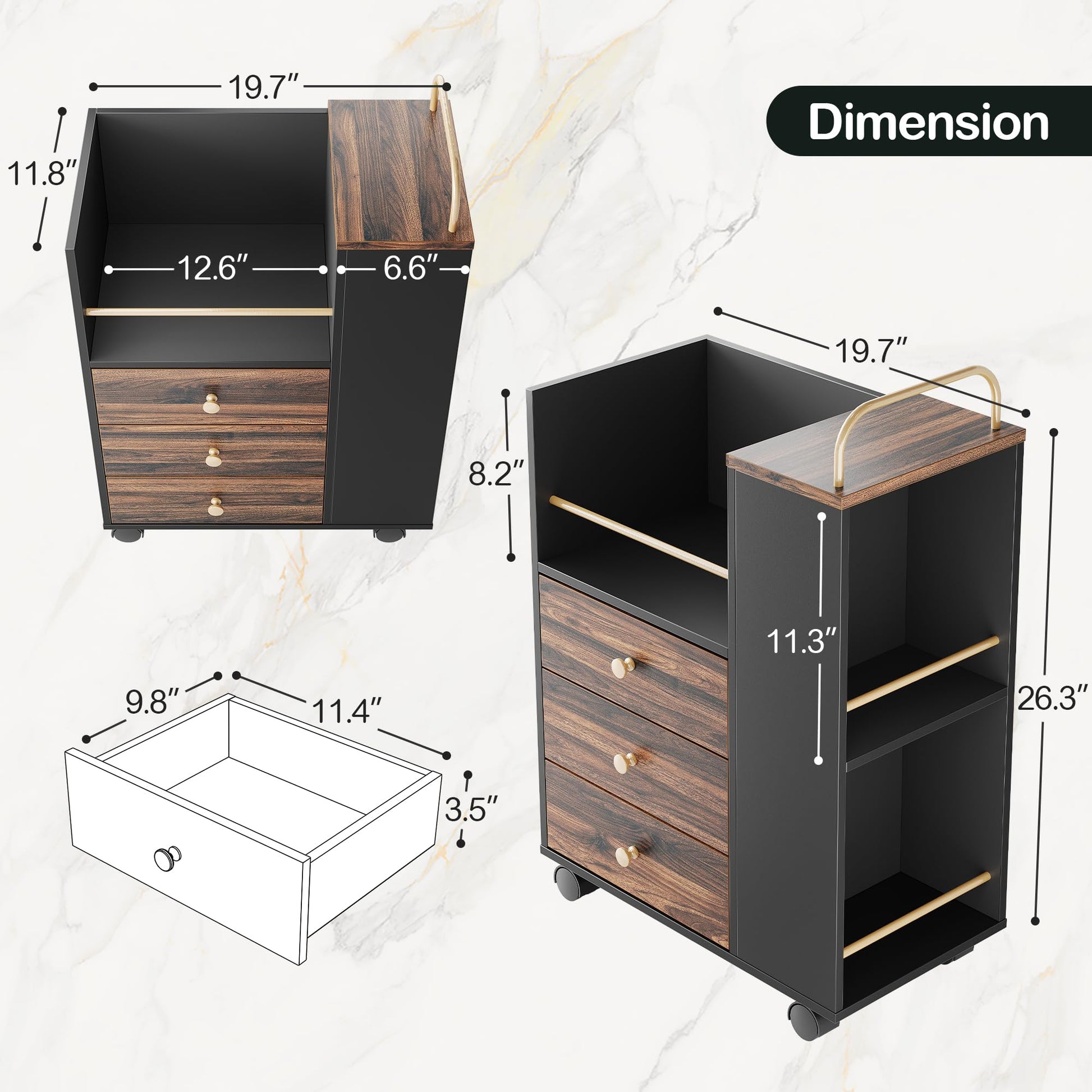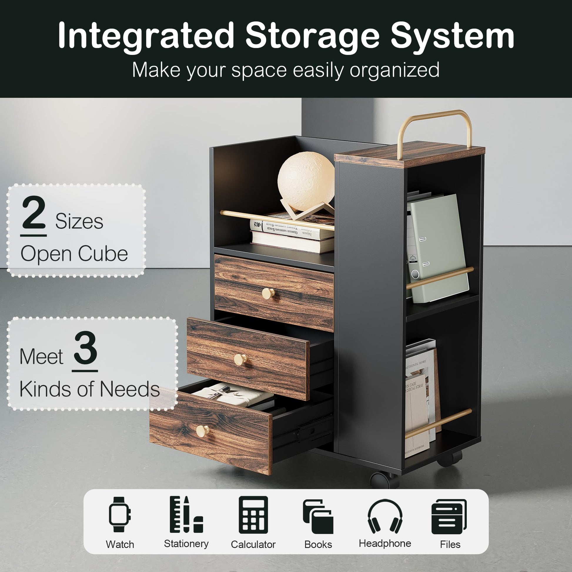 Transform your workspace with this versatile mobile file cabinet featuring three spacious drawers and open storage compartments. Designed for modern home offices and professional environments, this lateral filing cabinet combines functionality with mid-century modern aesthetics.