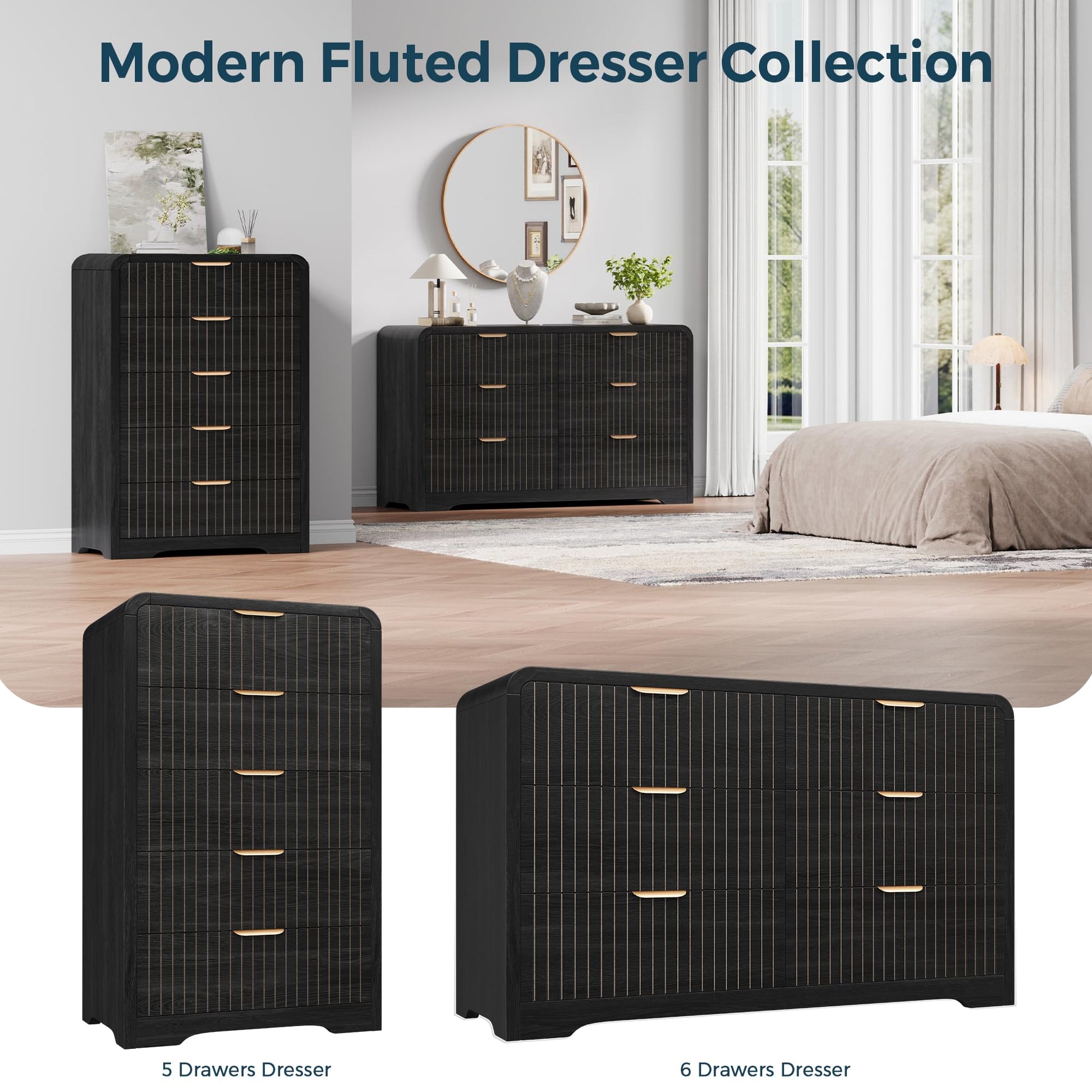 Elevate your bedroom with this stunning modern dresser featuring a distinctive curved profile and elegant fluted design. Crafted from premium wood, this mid-century inspired piece combines timeless style with practical storage solutions.