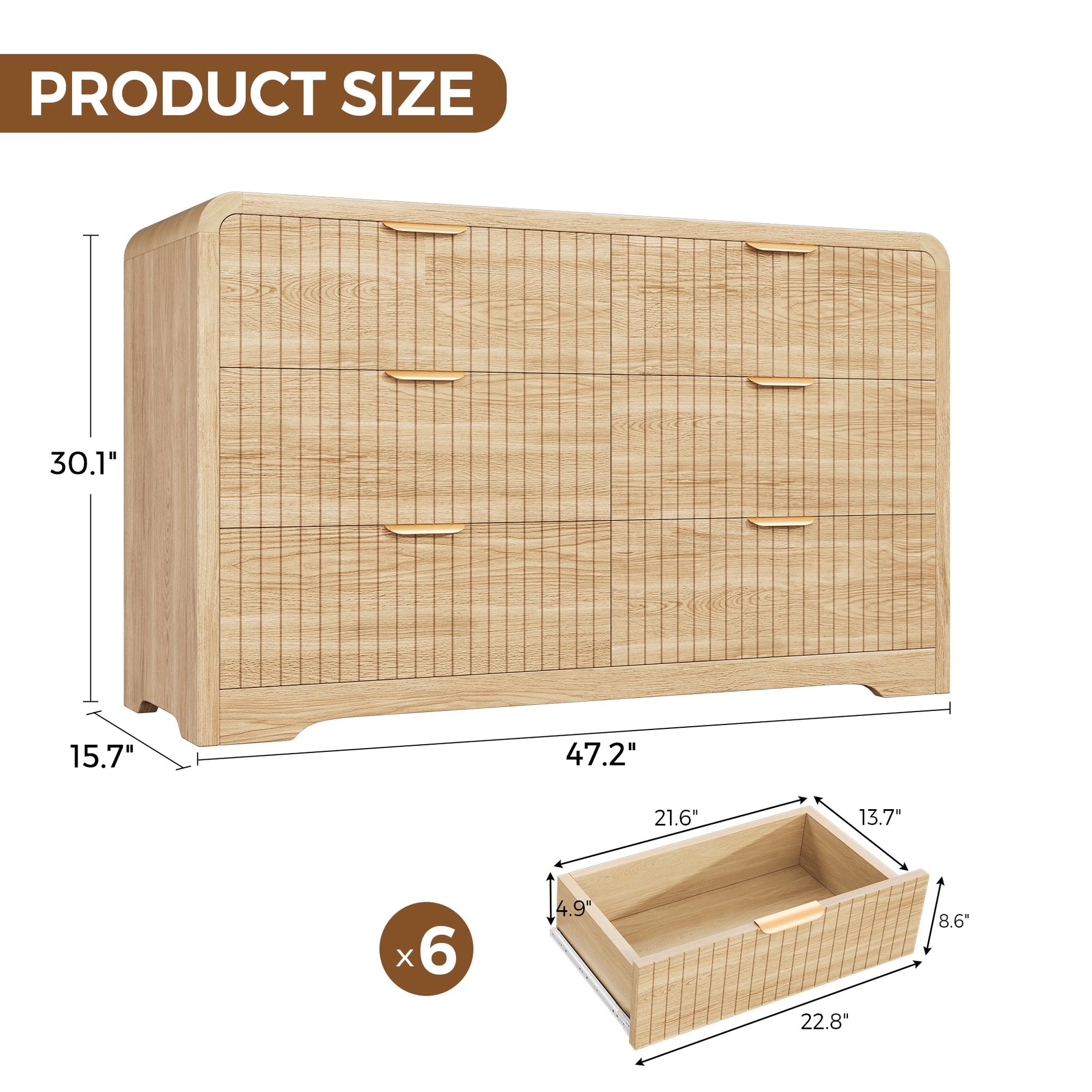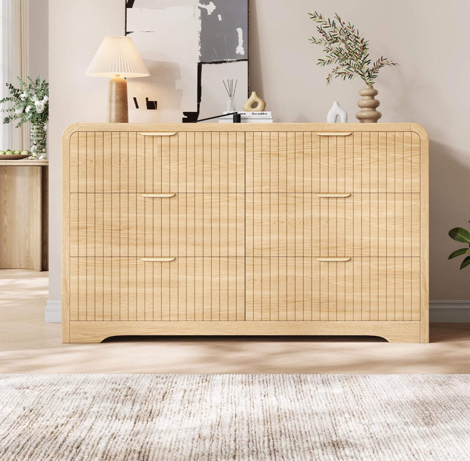 Modern 6 Drawer Dresser with Curved Fluted Design