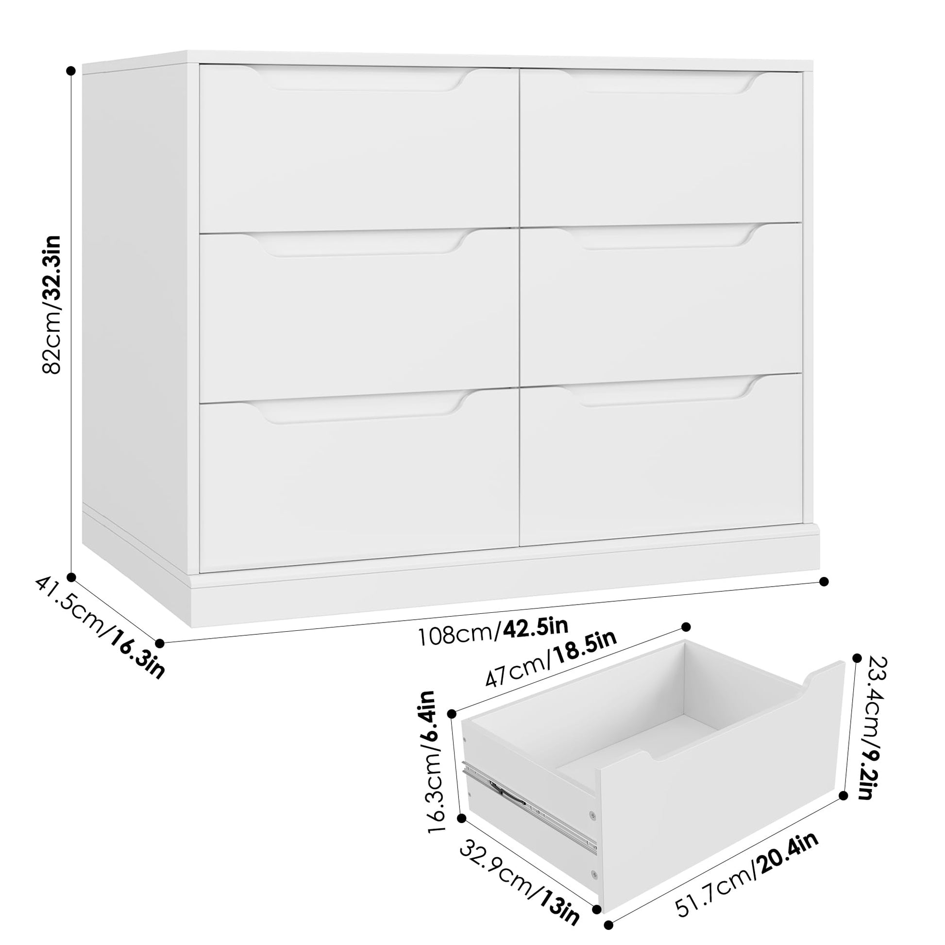 This modern double chest of drawers combines functionality with contemporary design, offering ample storage space for your bedroom, living room, or entryway. The large wooden dresser features six spacious drawers with convenient cut-out handles for easy access.