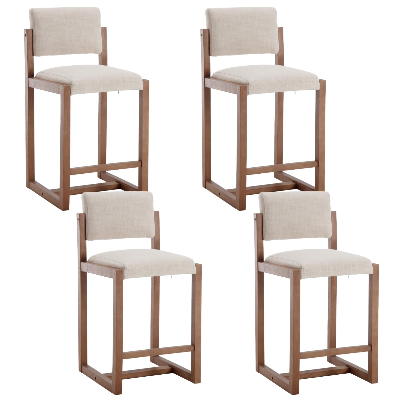 Elevate your kitchen, home bar, or coffee shop with this elegant set of 4 counter height bar stools. Featuring premium linen upholstery in a sophisticated beige tone and sturdy wooden legs, these barstools combine comfort with contemporary design.