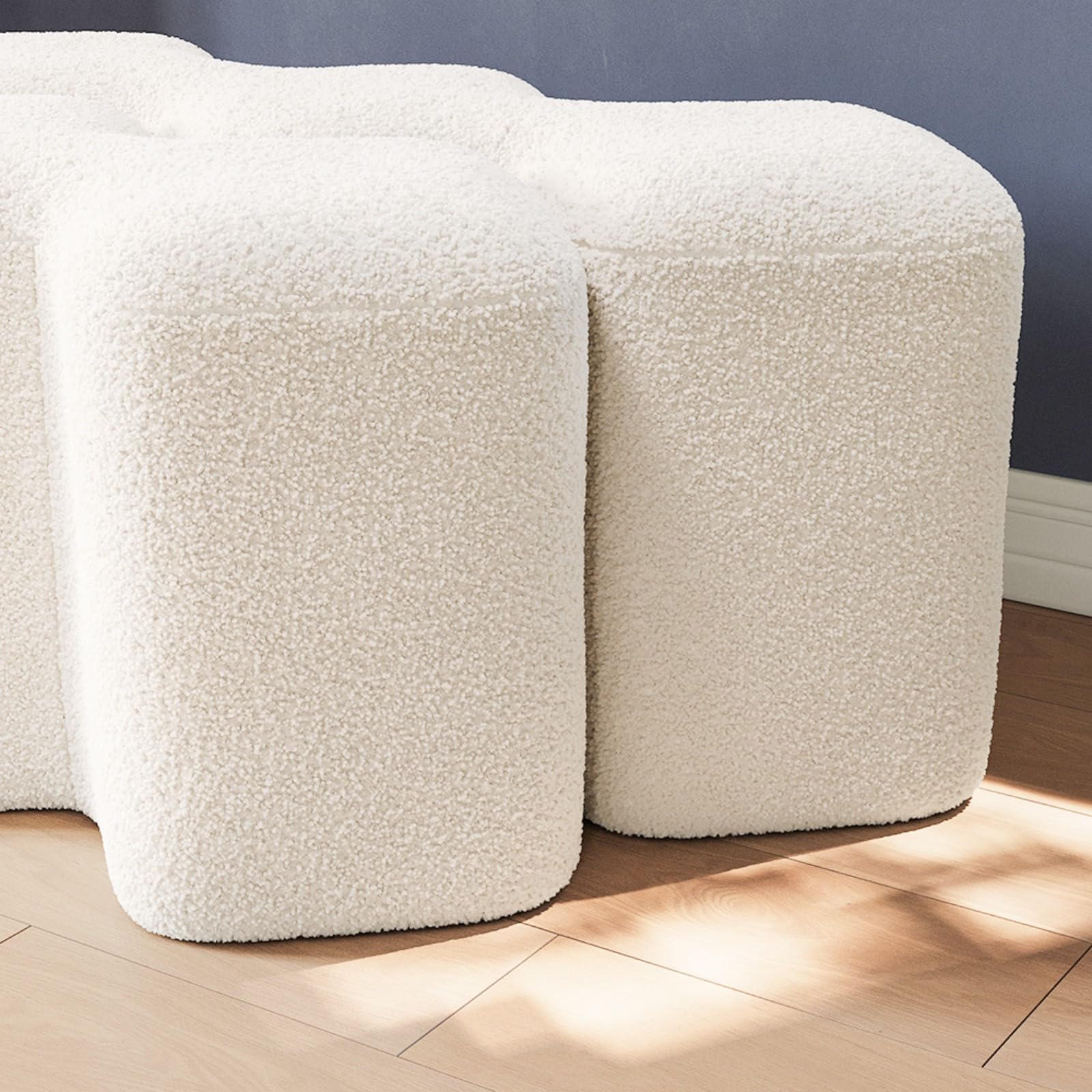 Transform your entryway, bedroom, or living room with this modern boucle upholstered bench featuring a unique geometric molecule design. The soft, comfortable boucle fabric creates a cozy and inviting atmosphere while the distinctive S-shape silhouette adds a visually striking contemporary element to any space.