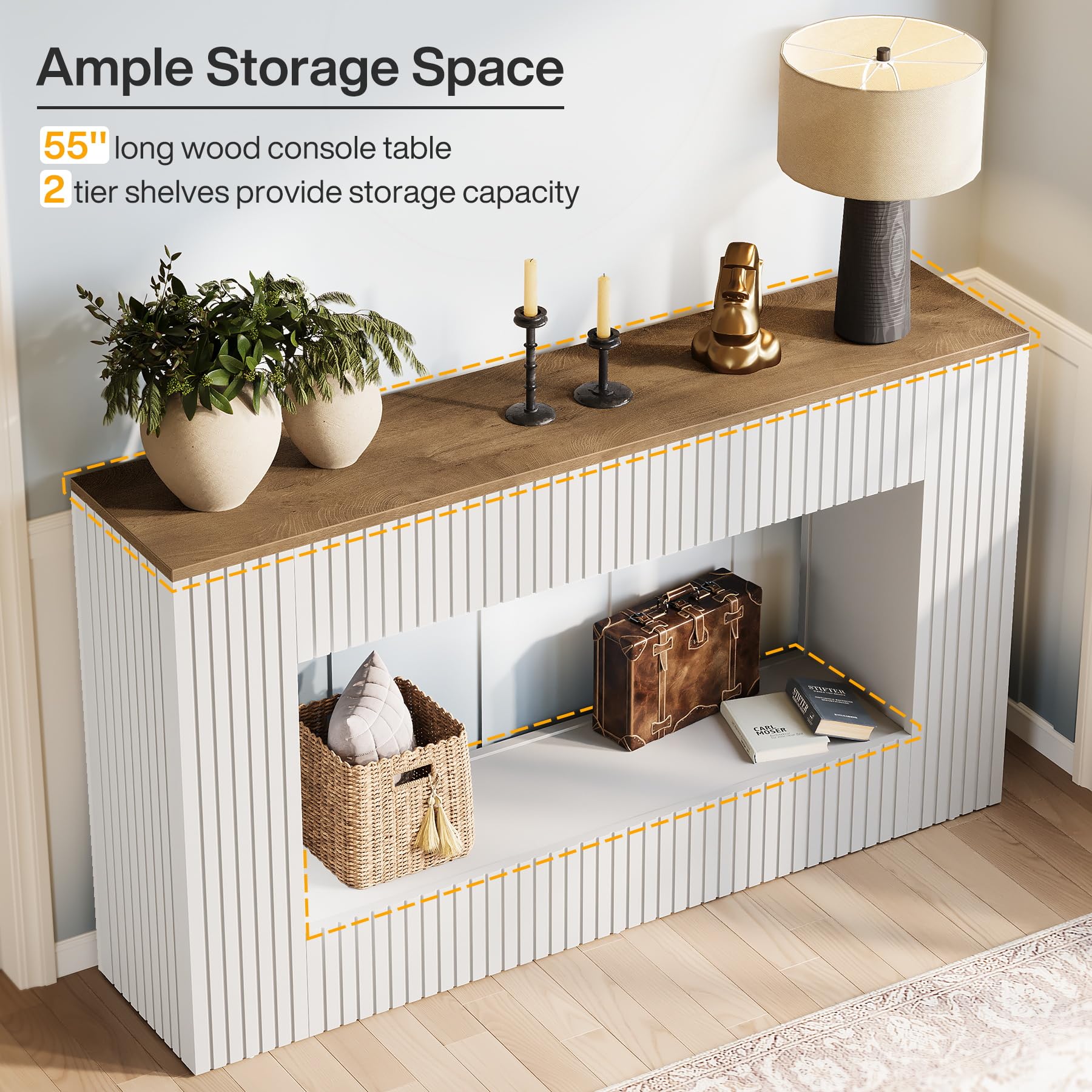 Modern Console Table 55-Inch Wood Entryway Table with Storage