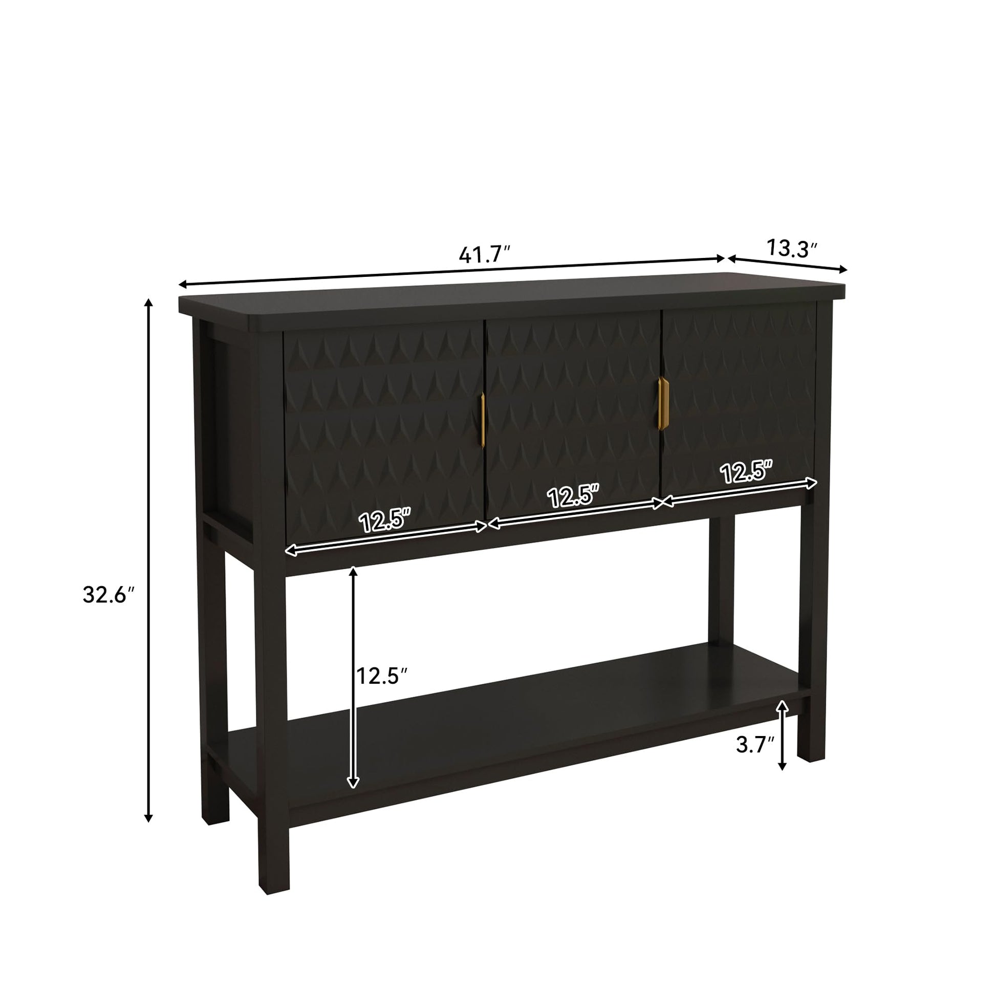 Elevate your entryway, living room, or hallway with this sophisticated console table featuring distinctive diamond pattern doors. The sleek black finish and geometric design create a striking focal point while providing essential storage space.