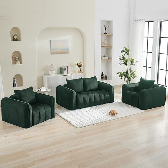 Transform your living space with this contemporary 3-piece seating collection featuring a loveseat and two single sofa chairs. Designed with deep seating and plush corduroy upholstery, this furniture set delivers exceptional comfort and modern style for any room.