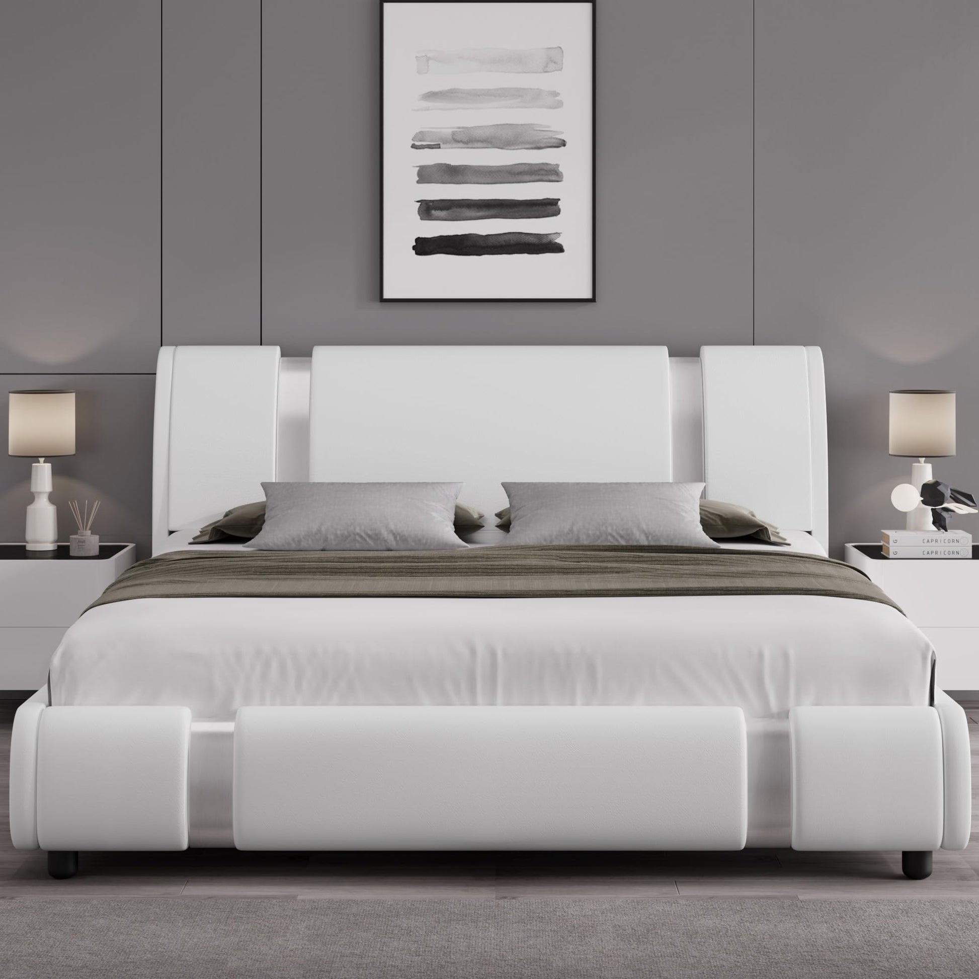 Modern Faux Leather Platform Bed Frame Queen