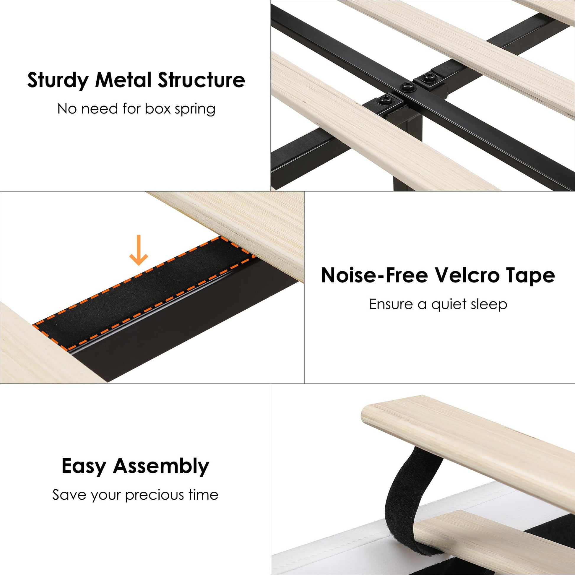 - Noise-free steel frame structure with anti-squeak strips