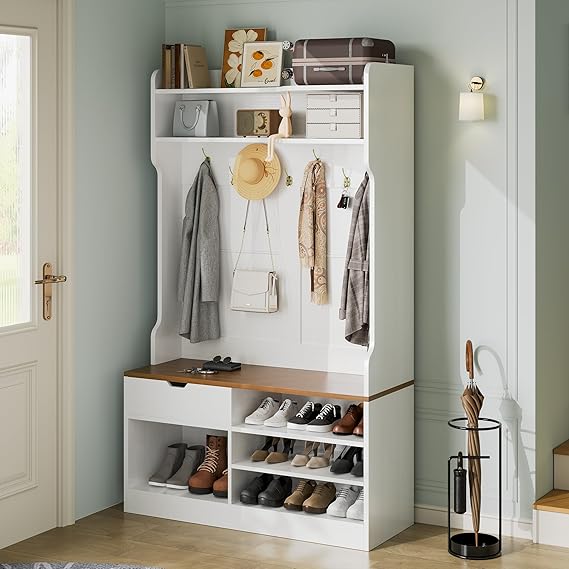 Modern Hall Tree with Bench and Shoe Storage