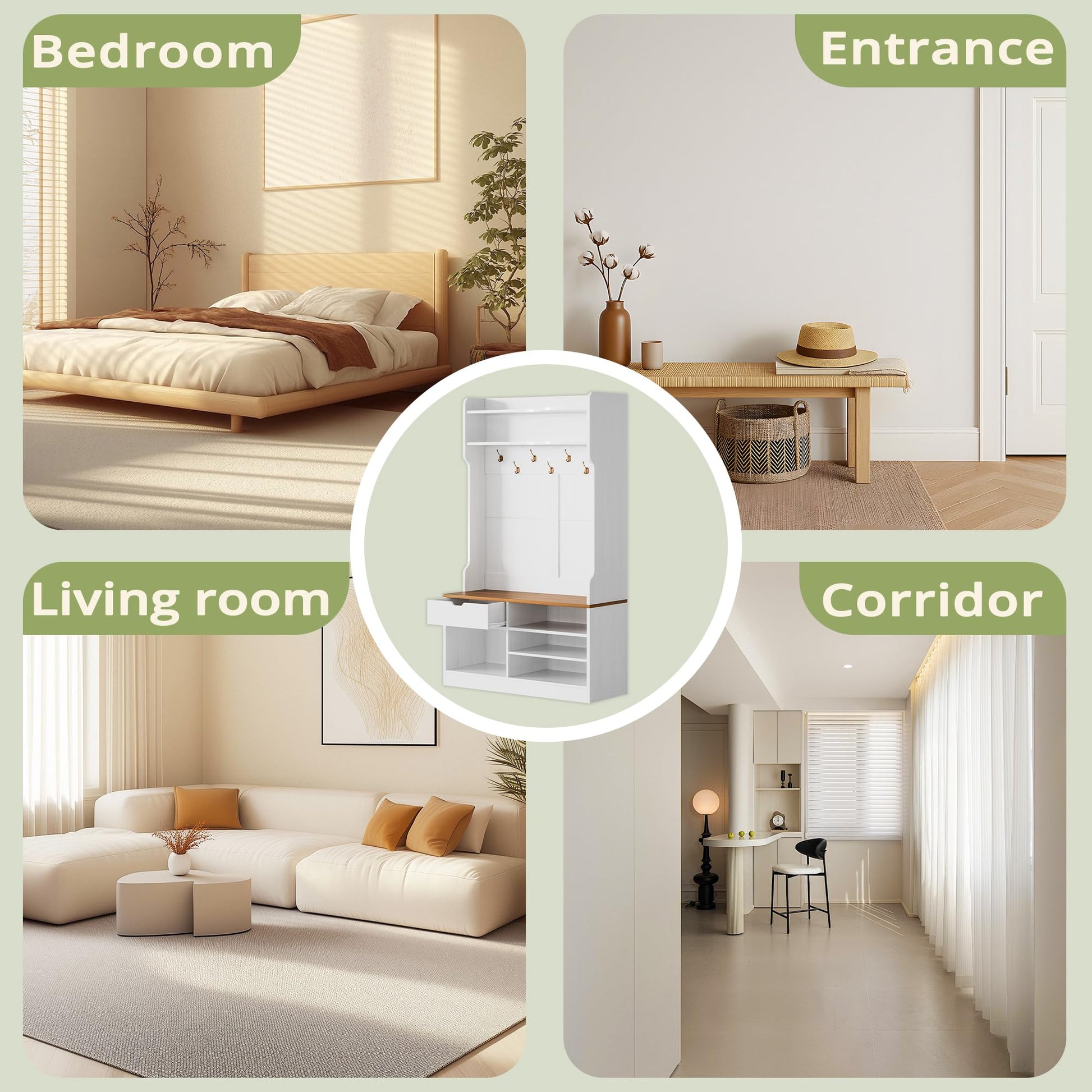 - Modern Design: Classical white finish complements any entryway décor