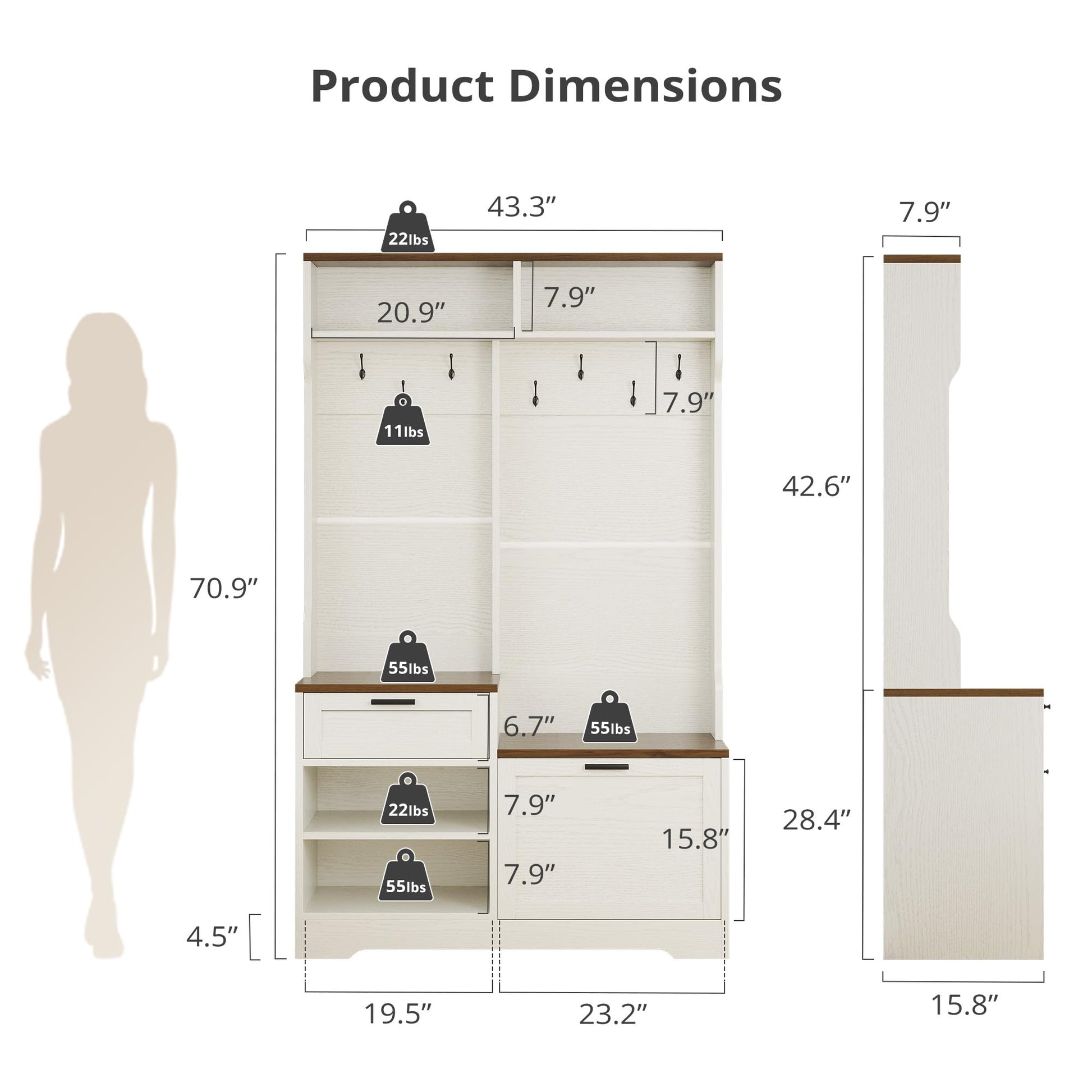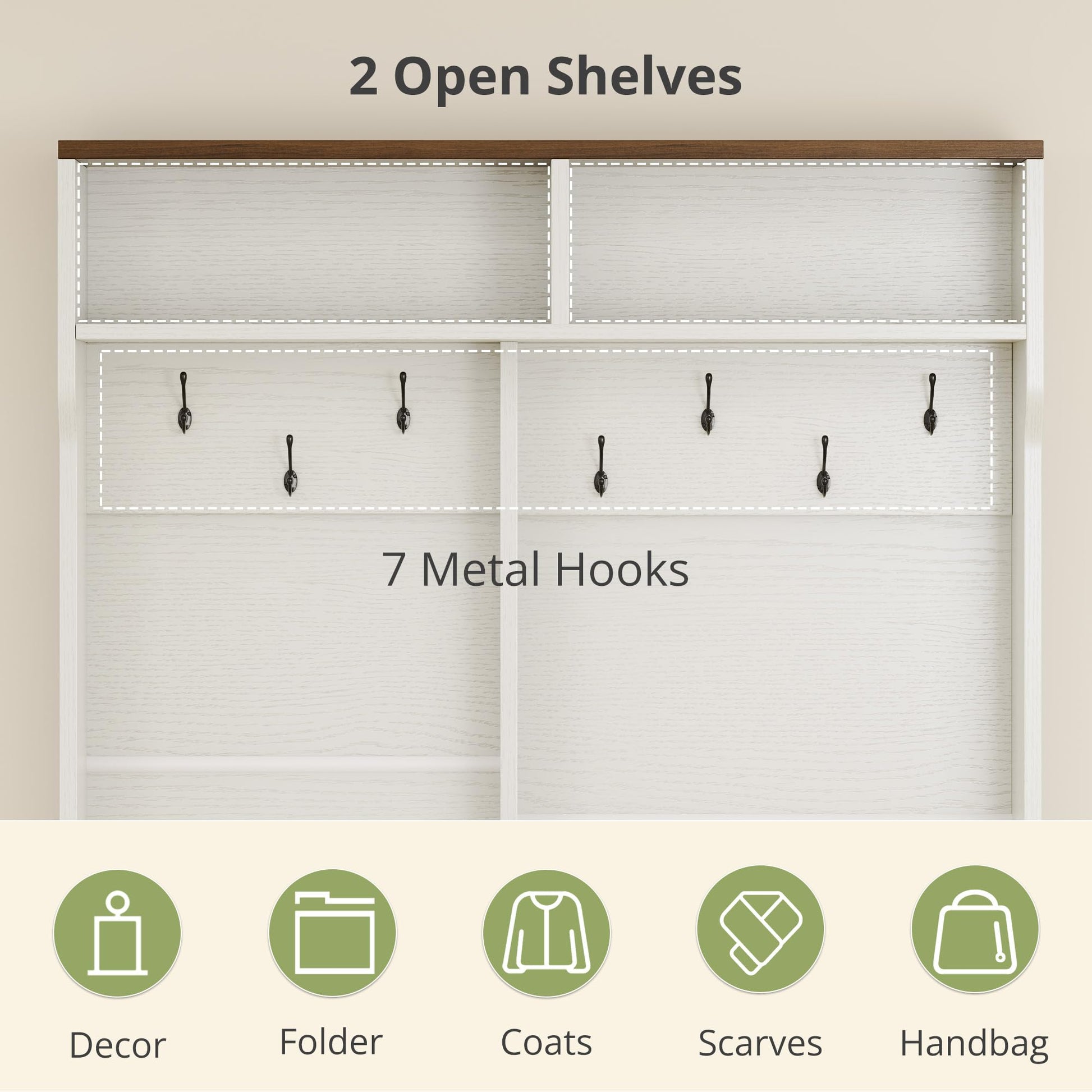 - 7 Heavy-Duty Hooks: Each hook supports up to 11 pounds for coats, bags, and hats offering ample organized entryway storage