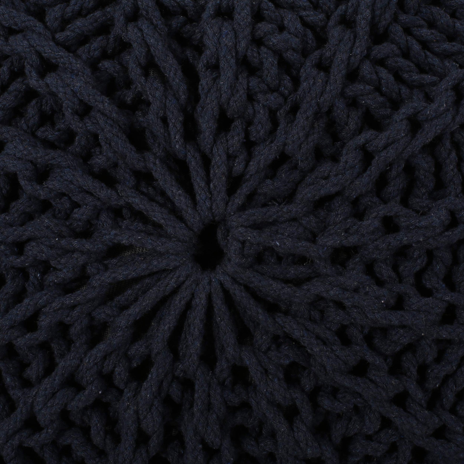 Modern Knitted Cotton Round Pouf Dark Blue
