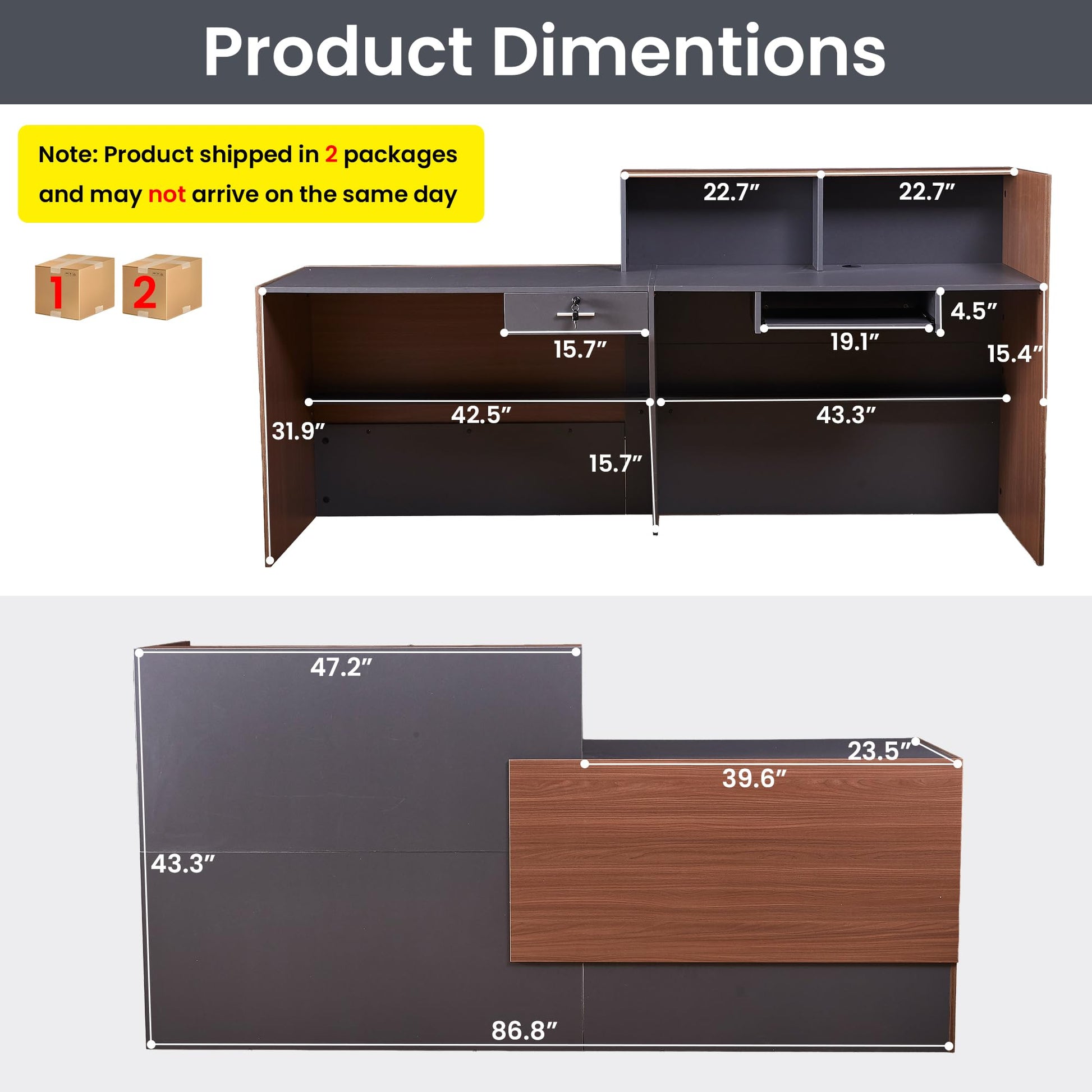 Note: This reception desk ships in two separate packages that may arrive at different times to ensure safe delivery of all components and accessories.