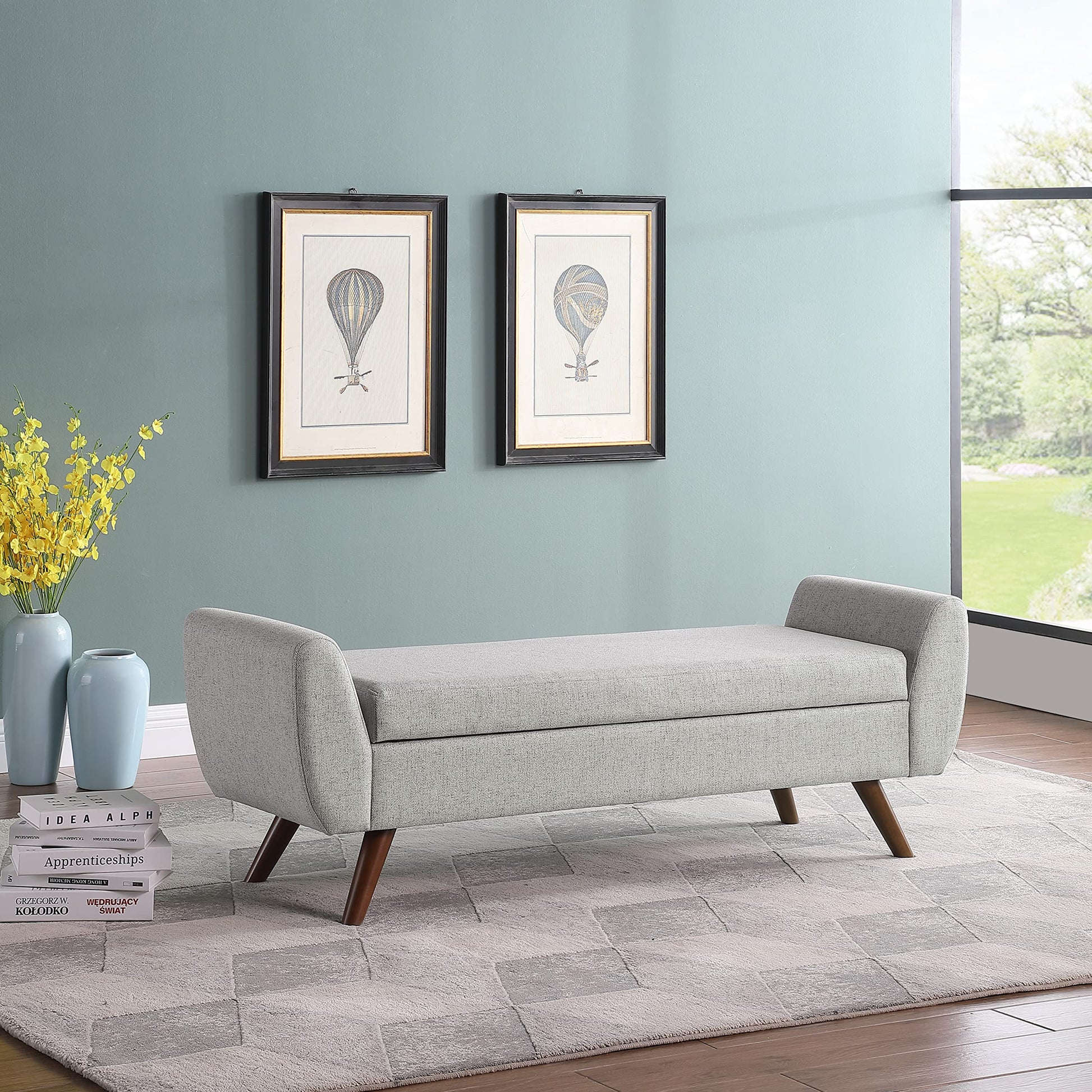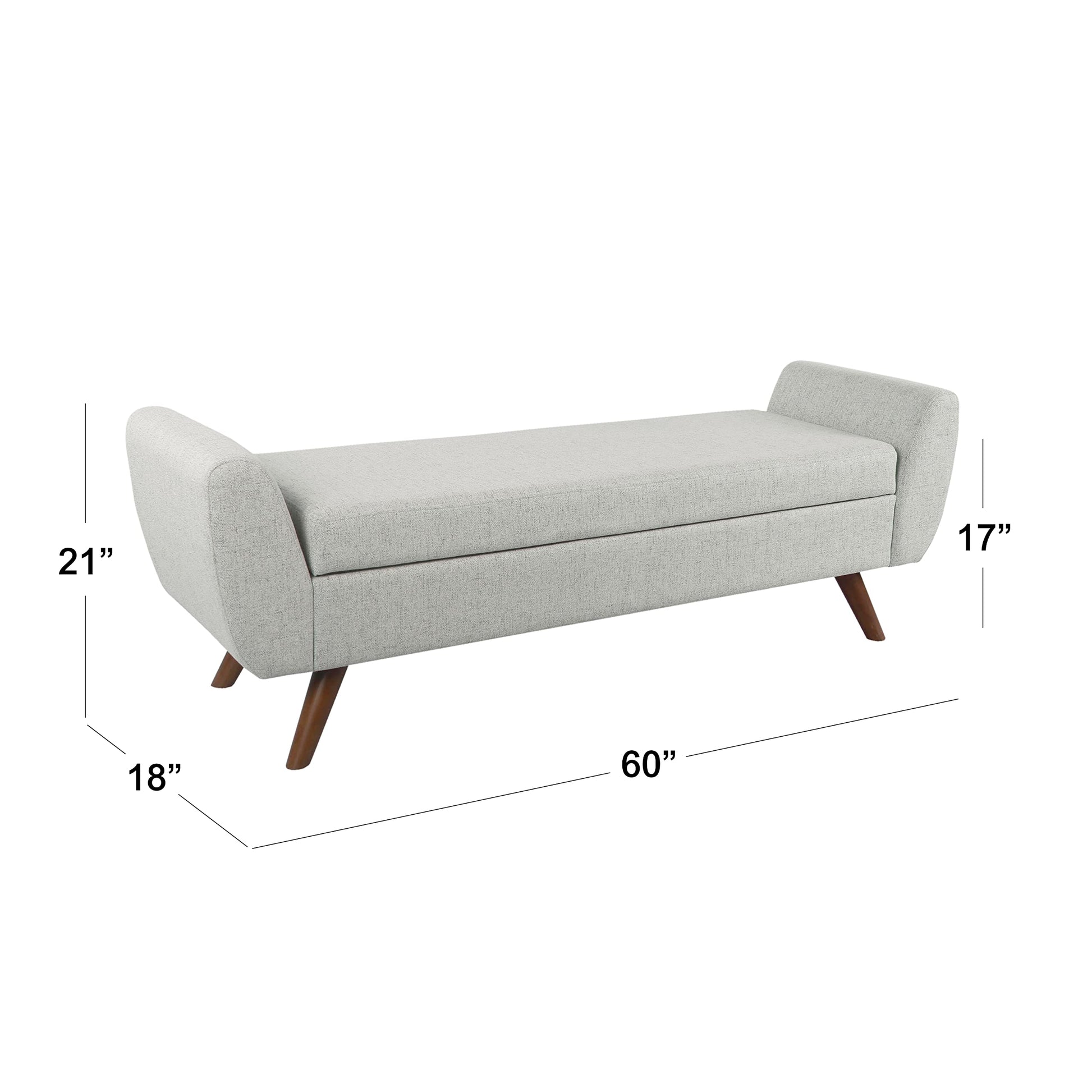 Add style and storage to any room in your home with this modern storage bench. Featuring a contemporary design and mid-tone walnut finished wood legs, this multi-functional gray woven storage bench provides seating and doubles as a coffee table, bedroom bench, or entryway bench with storage. This unique and functional bench easily blends with many different styles and colors in your home.