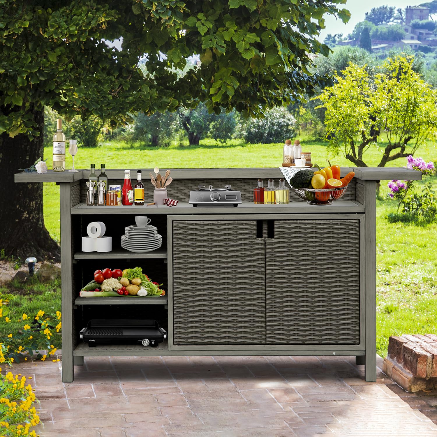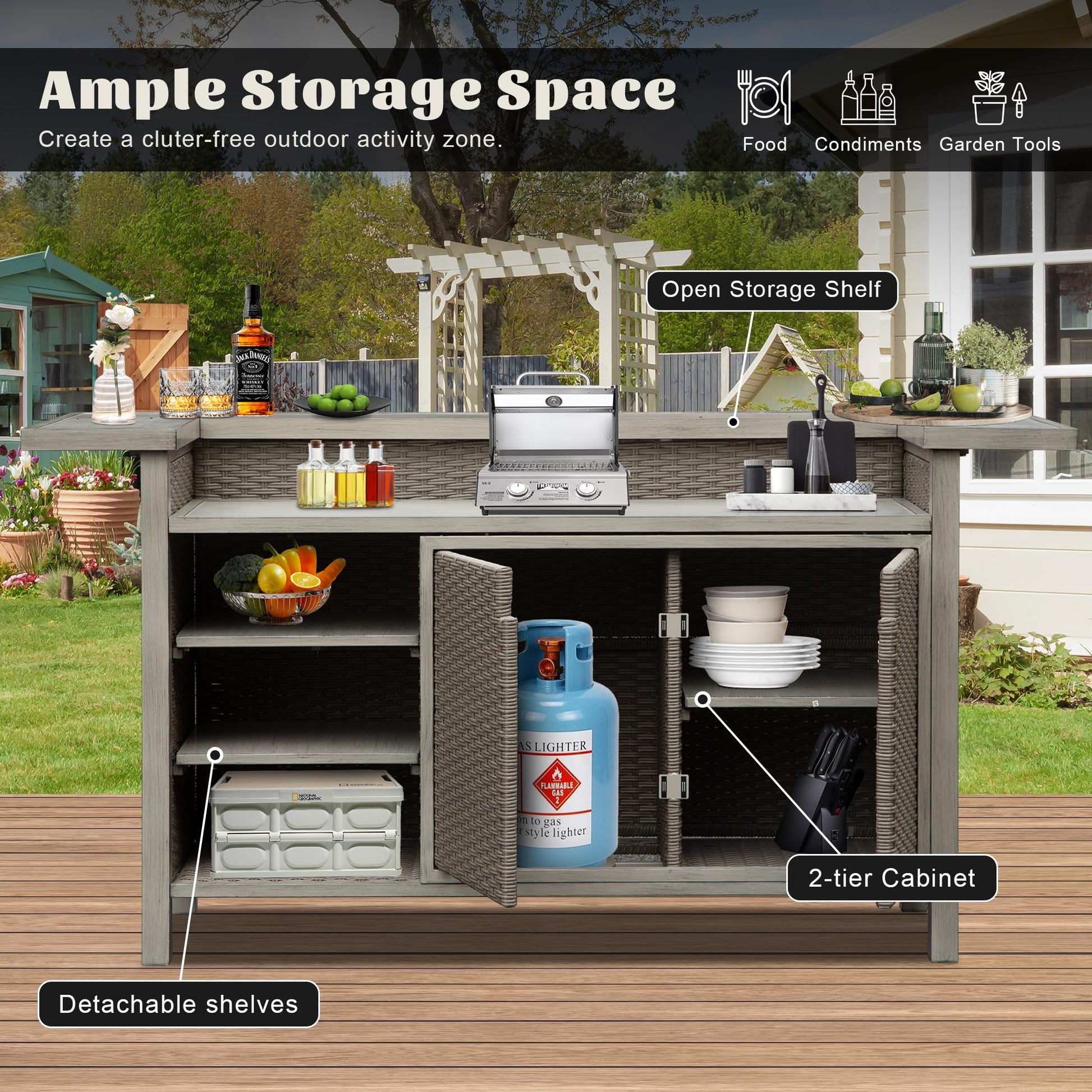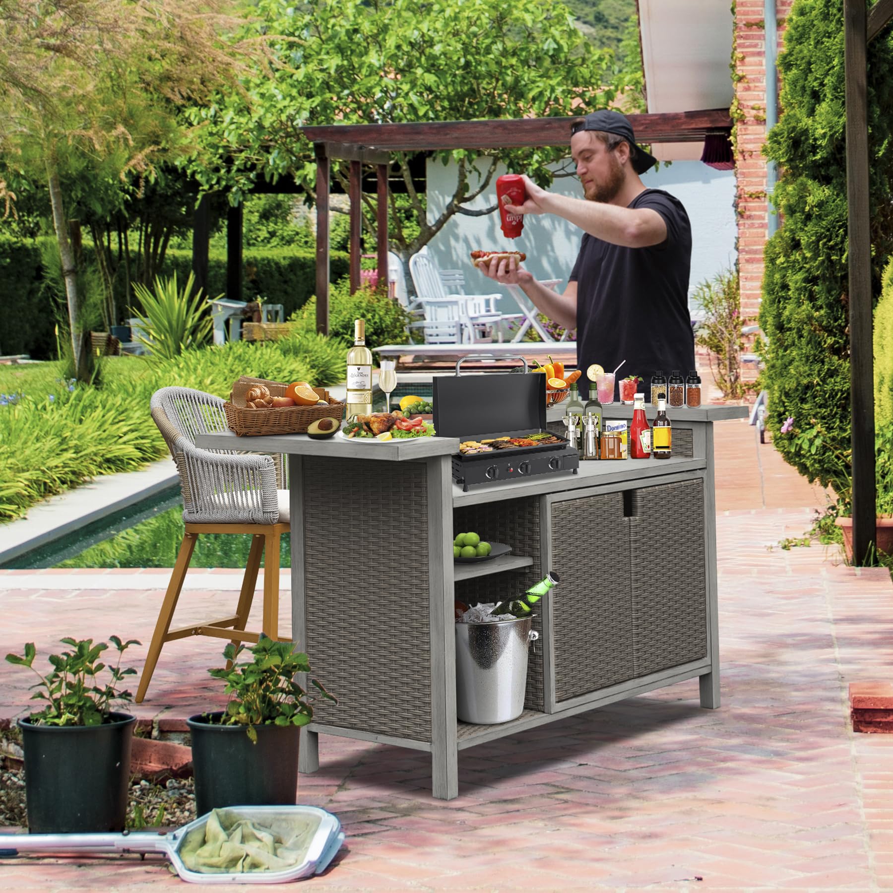 - Dual-purpose functionality: grill table and liquor cabinet bar