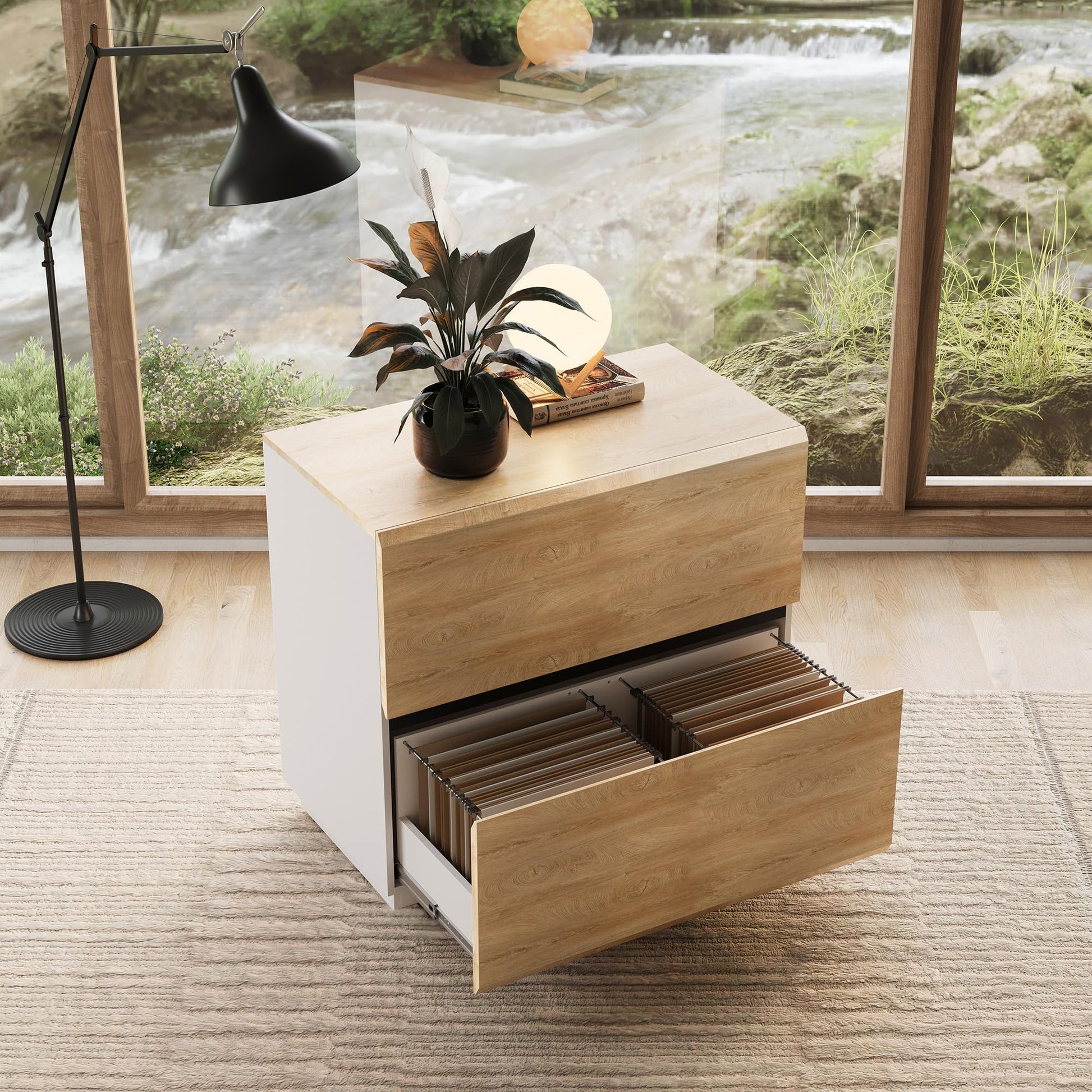 ModernMate 2 Drawer Lateral File Cabinet, 31W*28H Wood Filing Cabinet with Anti-tilt Mechanism, Home Office Storage Filing for Letter, A4 & Legal Size, Light Walnut