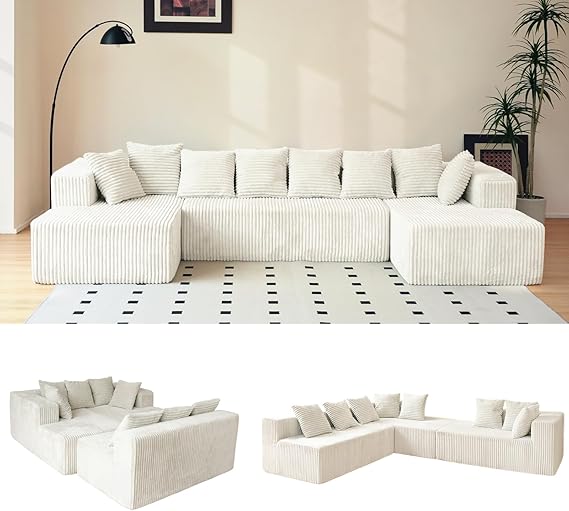 Experience ultimate comfort with this premium modular sectional sofa bed featuring high-density sponge construction and luxurious corduroy fabric. The innovative boneless design with eight ergonomic support pillows provides customized comfort for any seating position.