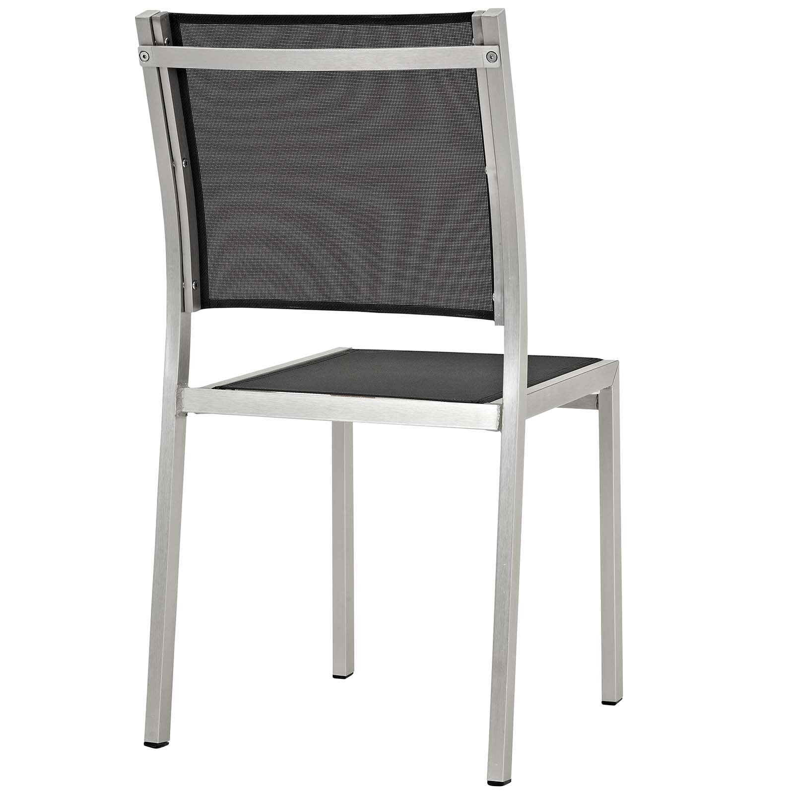 Details: Enjoy your patio or backyard leisure time with the strong and durable Shore Outdoor Patio Dining Furniture Set. Made with an anodized brushed aluminum frame and non-marking black plastic foot caps, Shore Outdoor Dining set features tone-on-tone grays with wood accents on the paneling for a chic and minimalist look. The Shore Patio Dining collection complements your casual gatherings with a look and functionality that you can rely on.