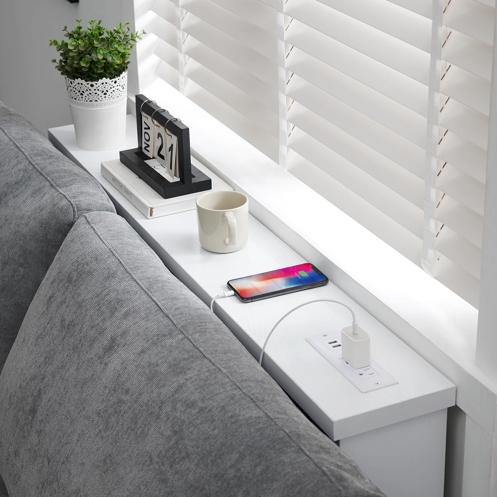 - Built-in electrical outlet and USB charging ports for convenient device charging
