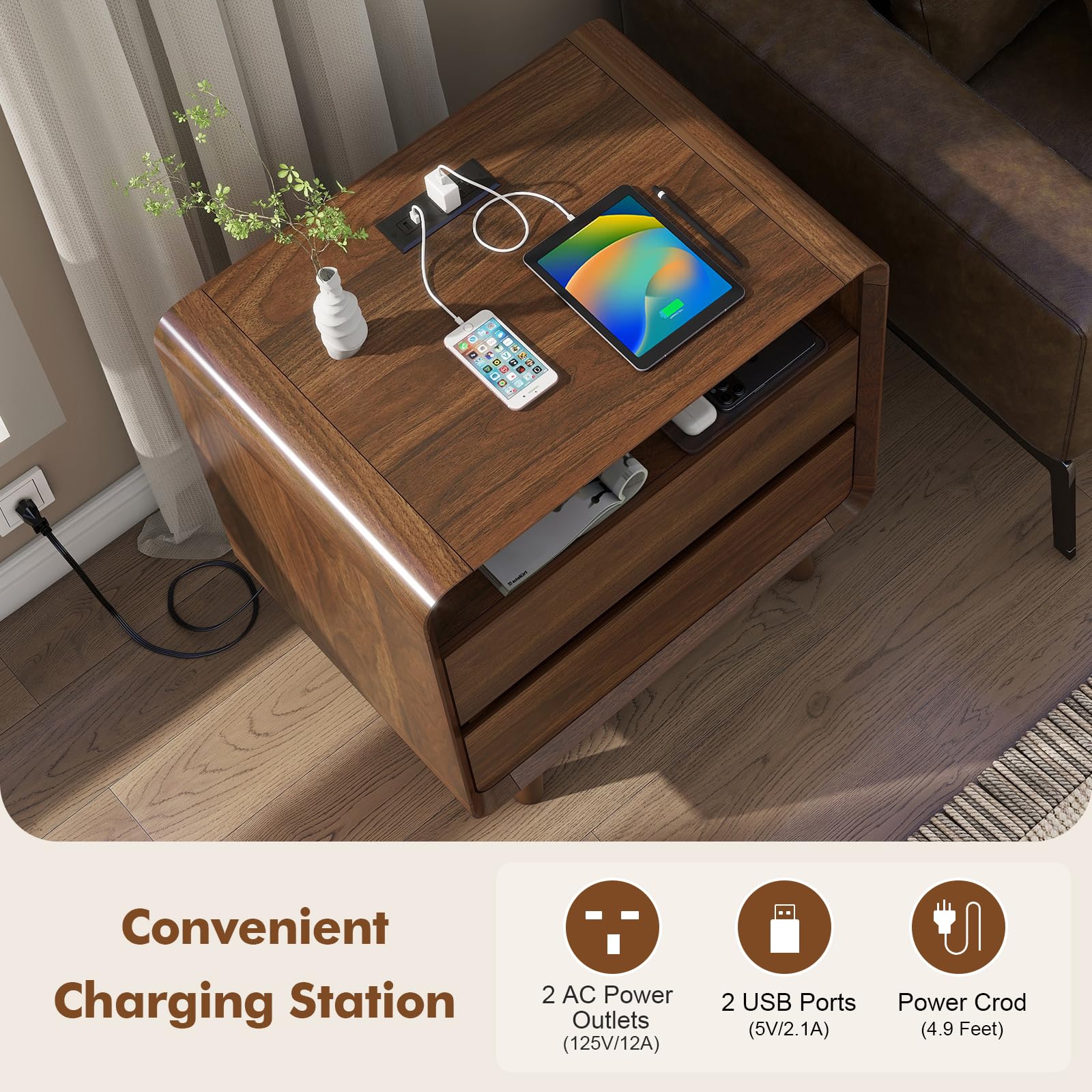 - Modern Design: Mid-century modern aesthetic with clean lines, sleek hardware, and timeless walnut wood construction that enhances any bedroom decor