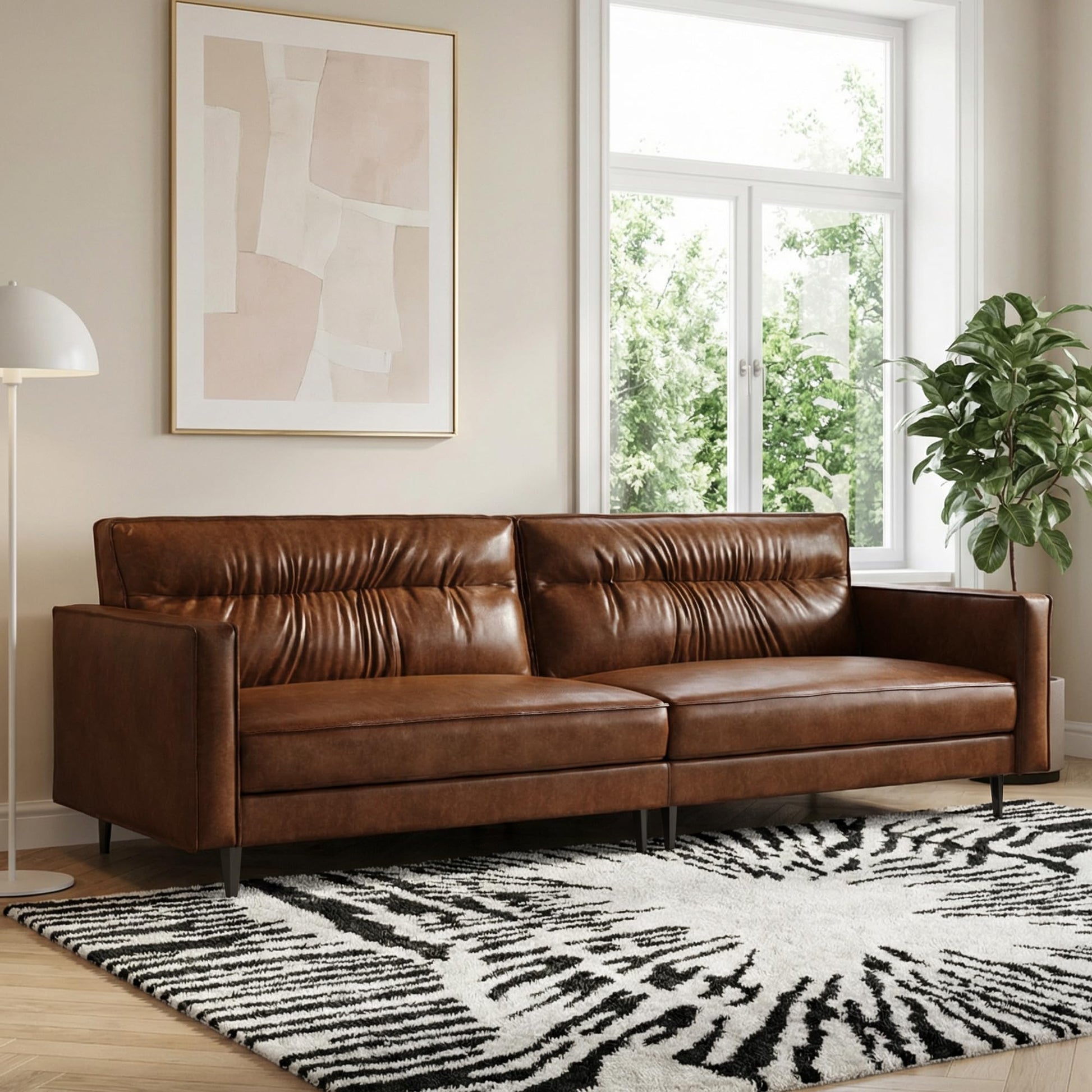 - Soft and Comfortable Leather: Crafted from premium fuax leather, it exhibits a natural sheen and vintage texture. More durable and less prone to damage after multiple uses. The subtle color variations and natural grain on the leather surface highlight the authentic charm of genuine leather, giving each sofa its own unique character and sophisticated style.
