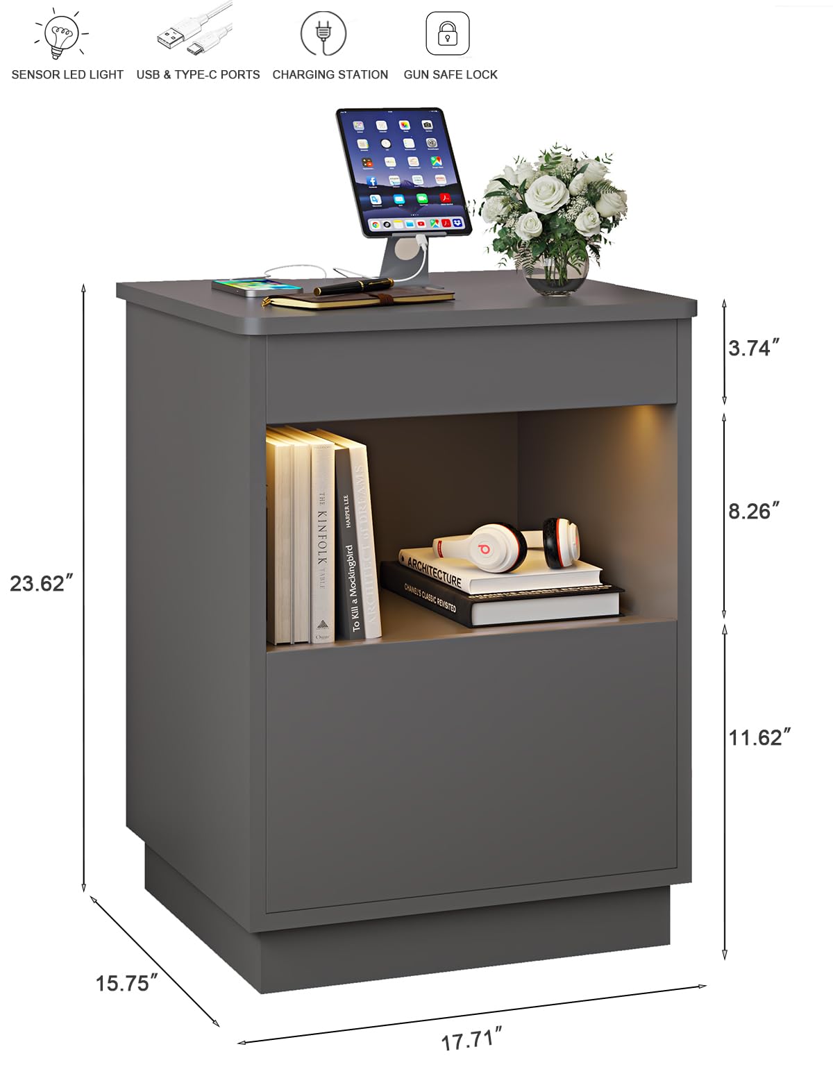 | Special Features | USB charging, Type-C port, LED sensor light, gun drawer |