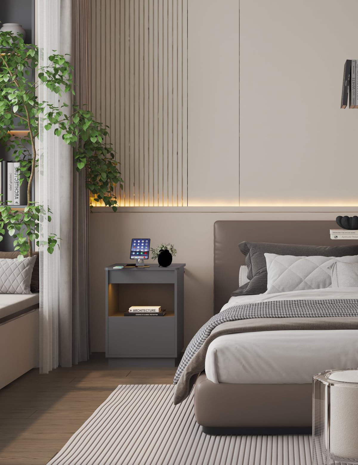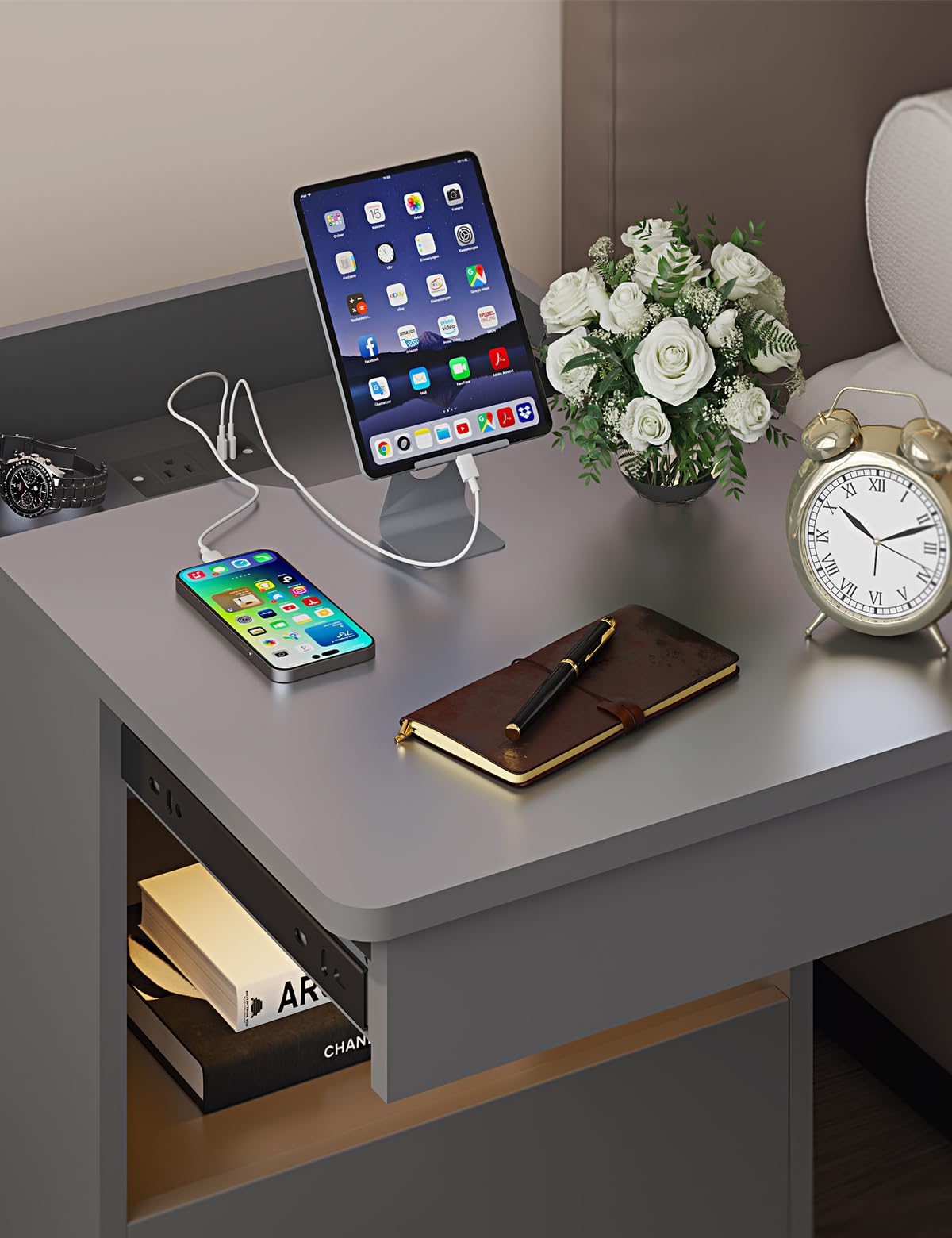 Perfect for bedrooms, guest rooms, or living spaces where you need convenient charging access and smart lighting. The concealed storage drawer provides secure space for valuables while maintaining a sleek appearance.