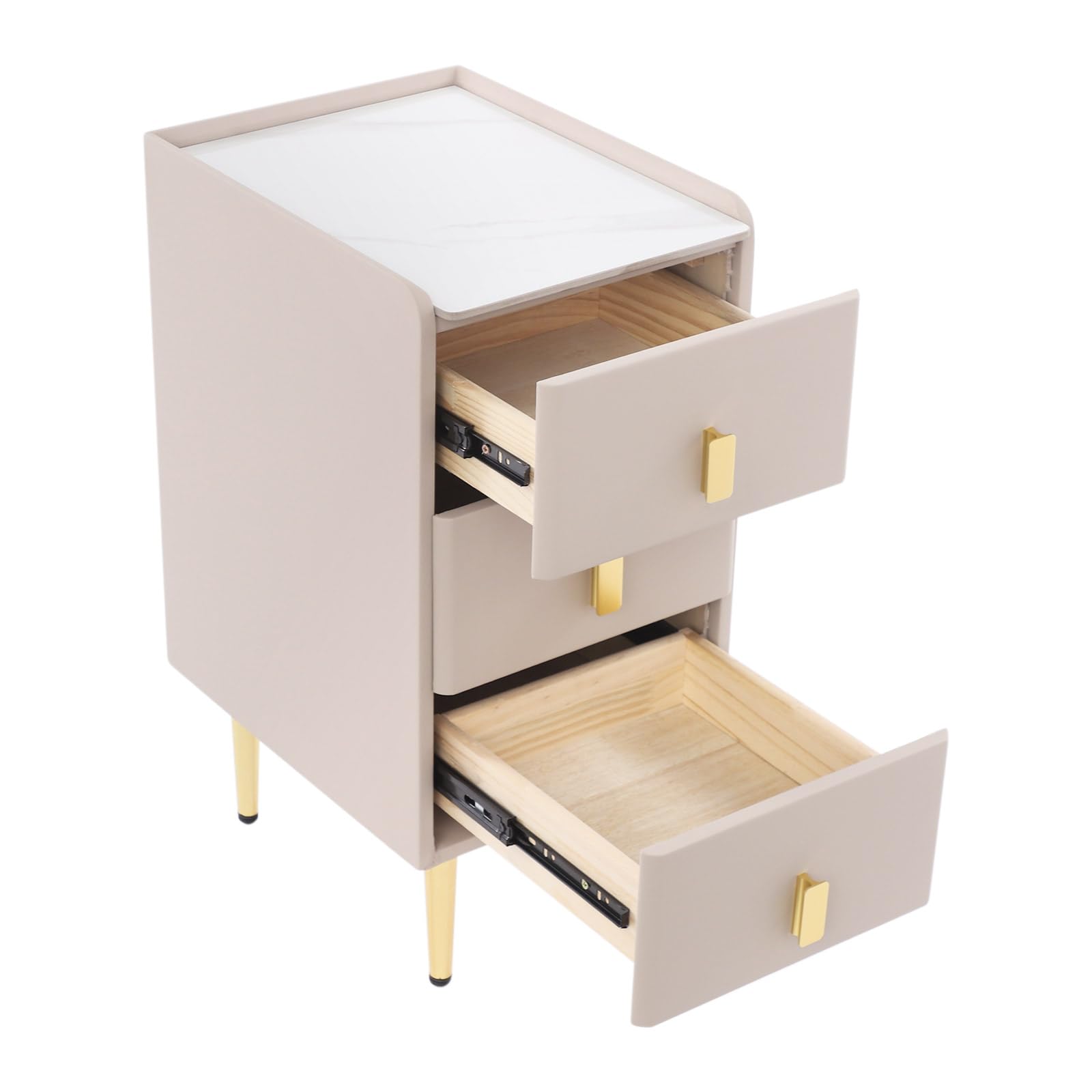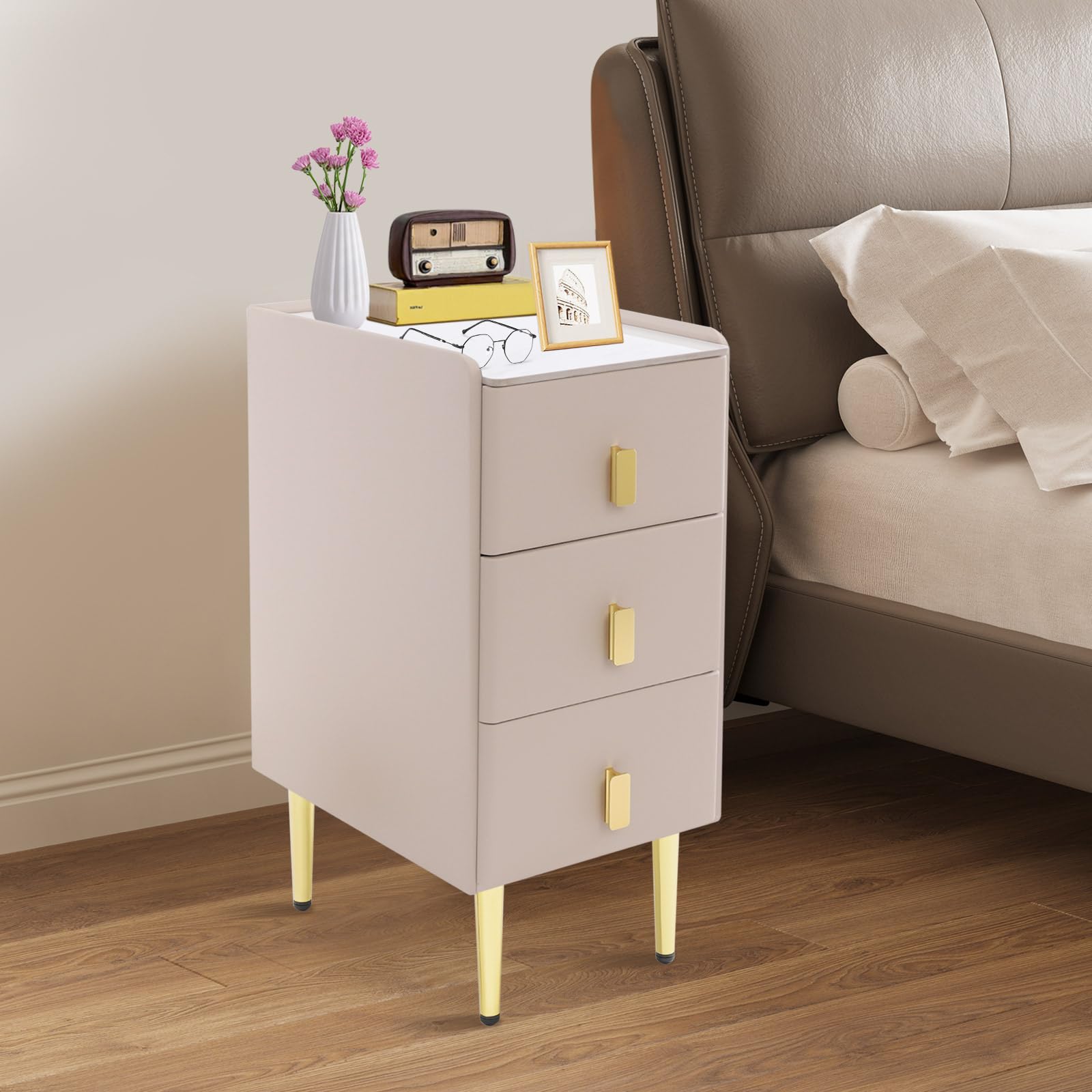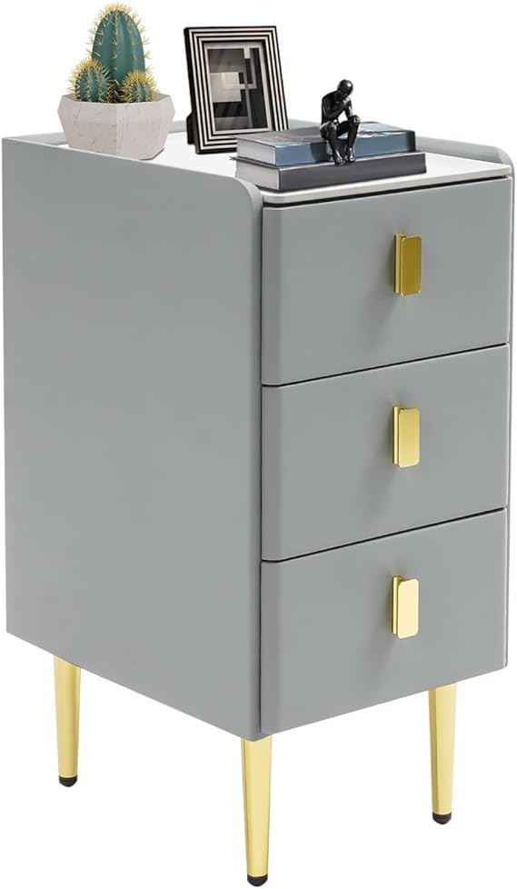 This compact nightstand combines functionality with modern design, perfect for bedrooms, entryways, or dorm rooms. Featuring durable PU leather construction and sturdy metal legs, this bedside cabinet offers reliable storage while maintaining a sleek profile.