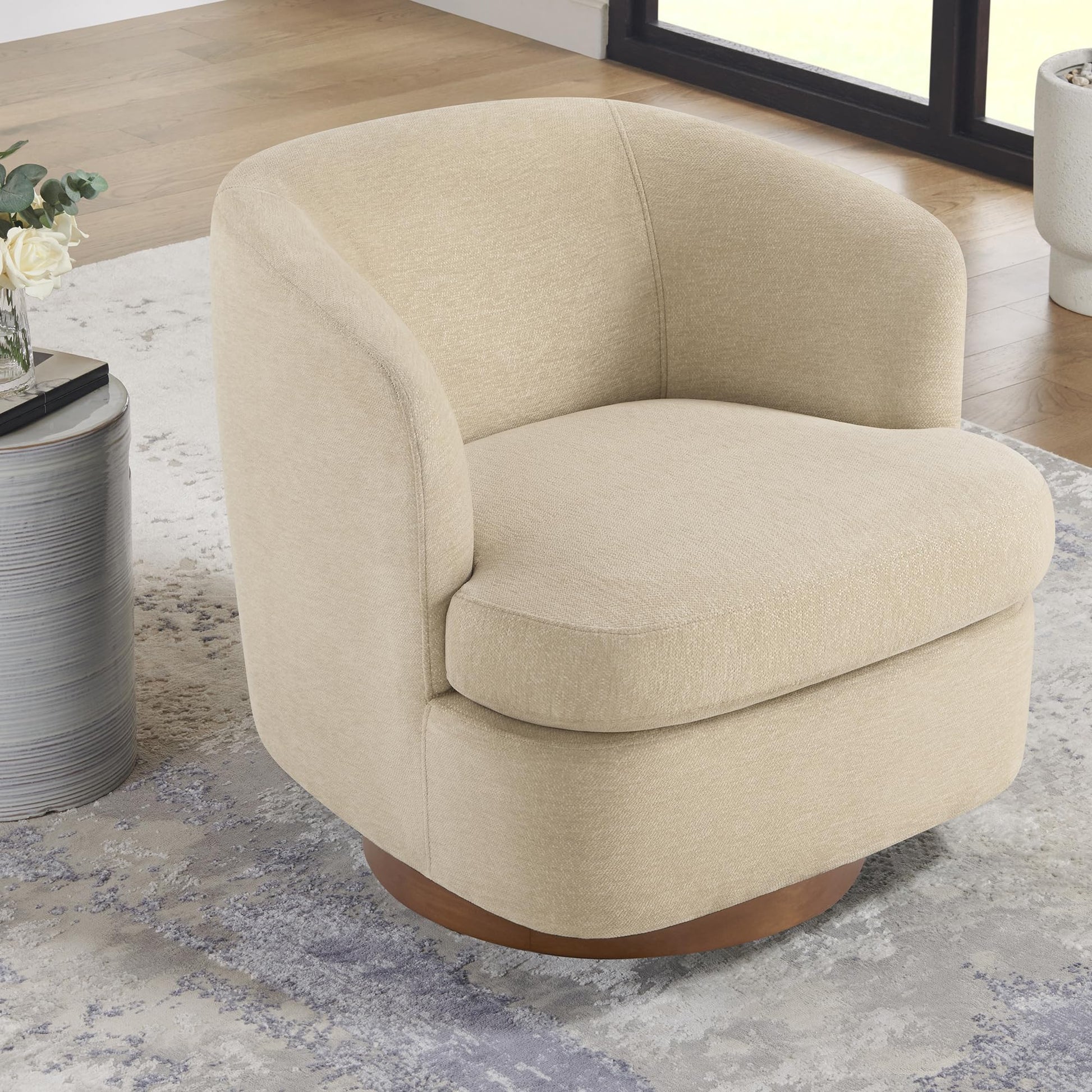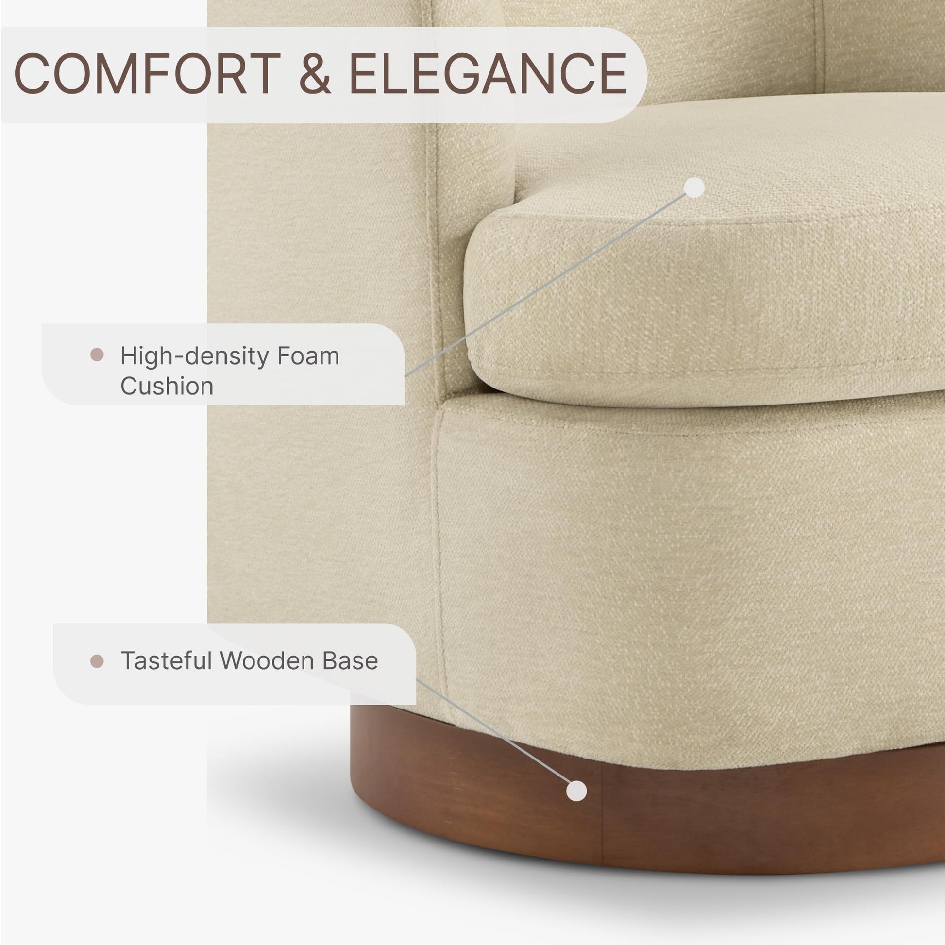 This stylish barrel swivel chair features an elegant curved back and smooth wooden base, blending modern flair with classic charm. Perfect for your living room, bedroom, or office, this versatile accent chair offers both comfort and sophistication.