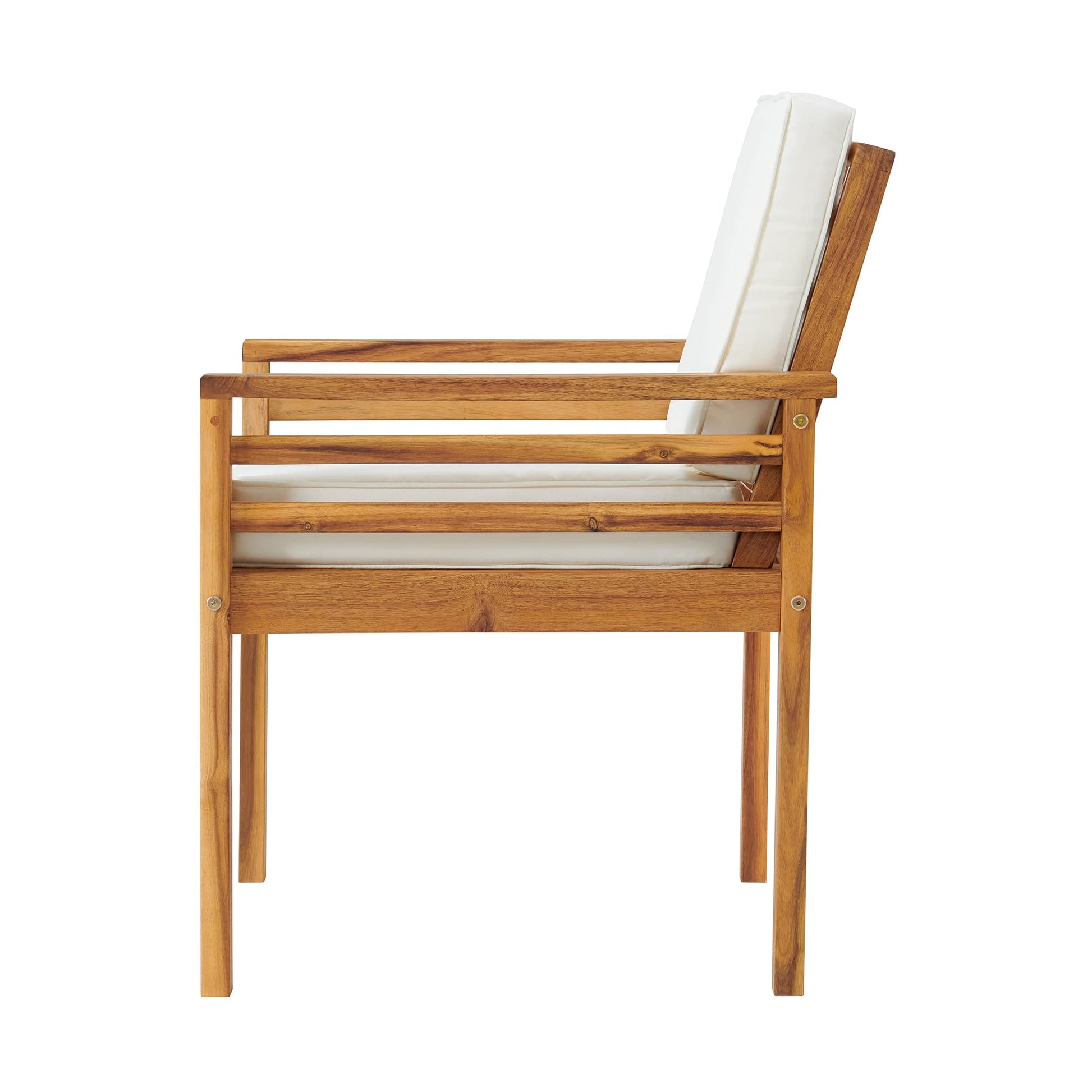 - [STYLISH AND FUNCTIONAL DESIGN] The Okemo Acacia Wood 7-Piece Dining Set features a classic rectangular table and six chairs, all crafted from high-quality acacia wood. Its natural finish and ivory cushions add elegance to your patio or garden