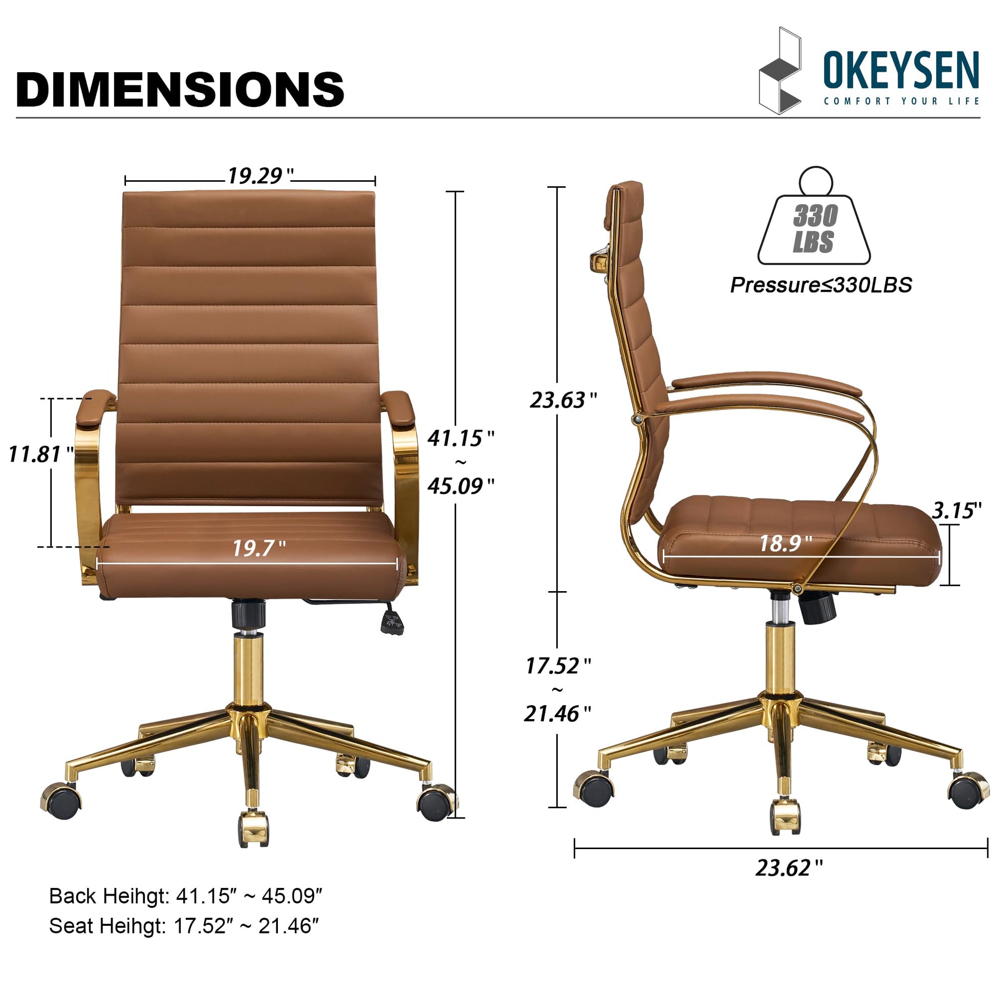 Okeysen Gold Office Desk Chair, Ergonomic Leather Modern Conference Room Chairs, Executive Ribbed Height Adjustable Swivel Rolling Golden Chair for Home Office.