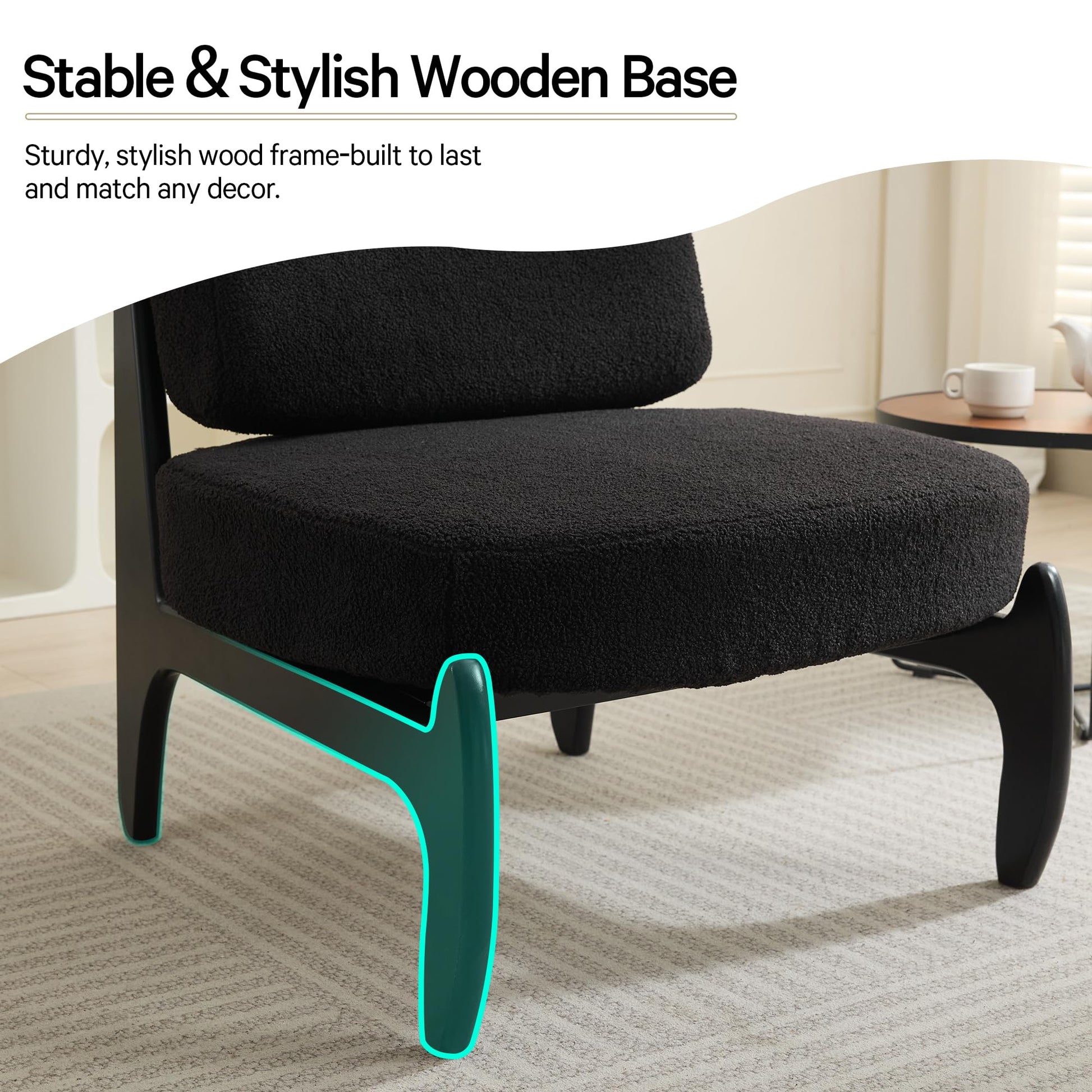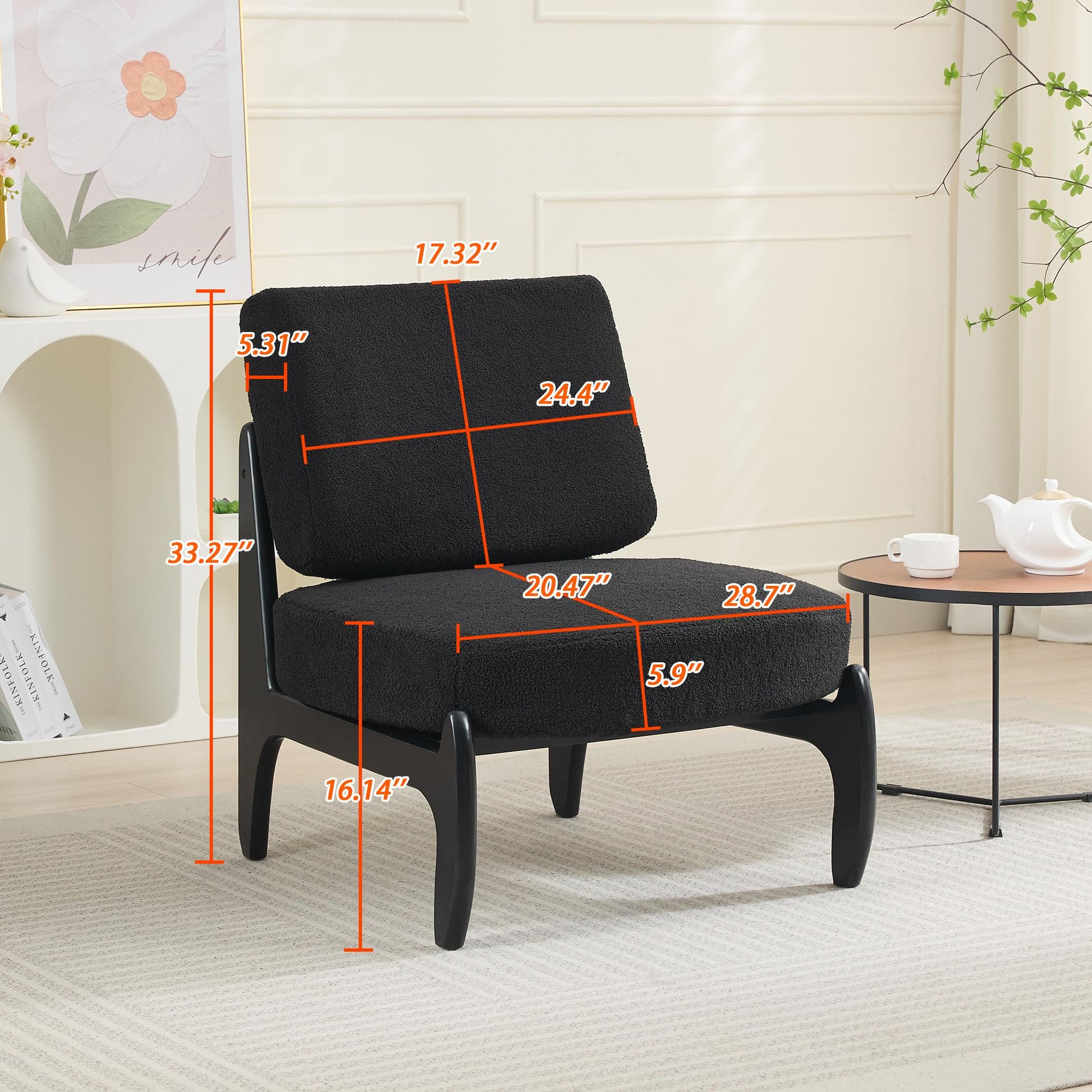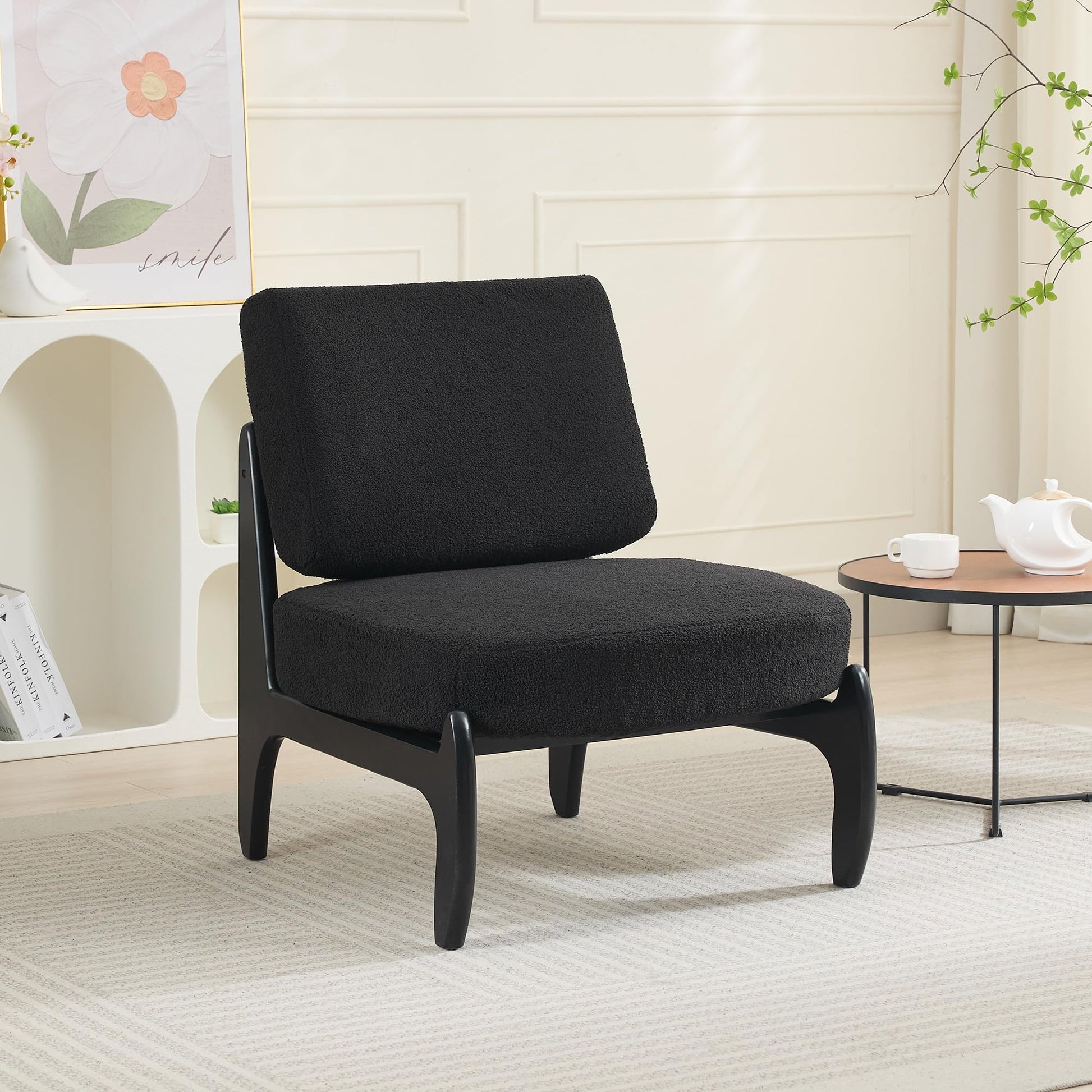 Okeysen Mid-Century Accent Chair, Modern Armless Lounge Chair with Black Teddy Fabric and Solid Wood Legs, Comfy Slipper Chair for Living Room, Bedroom, Balcony