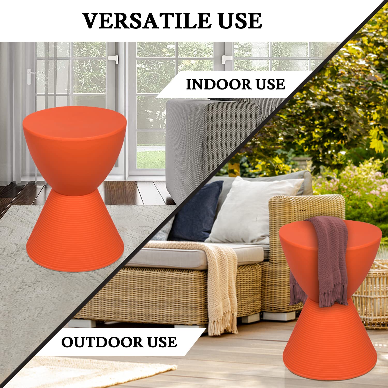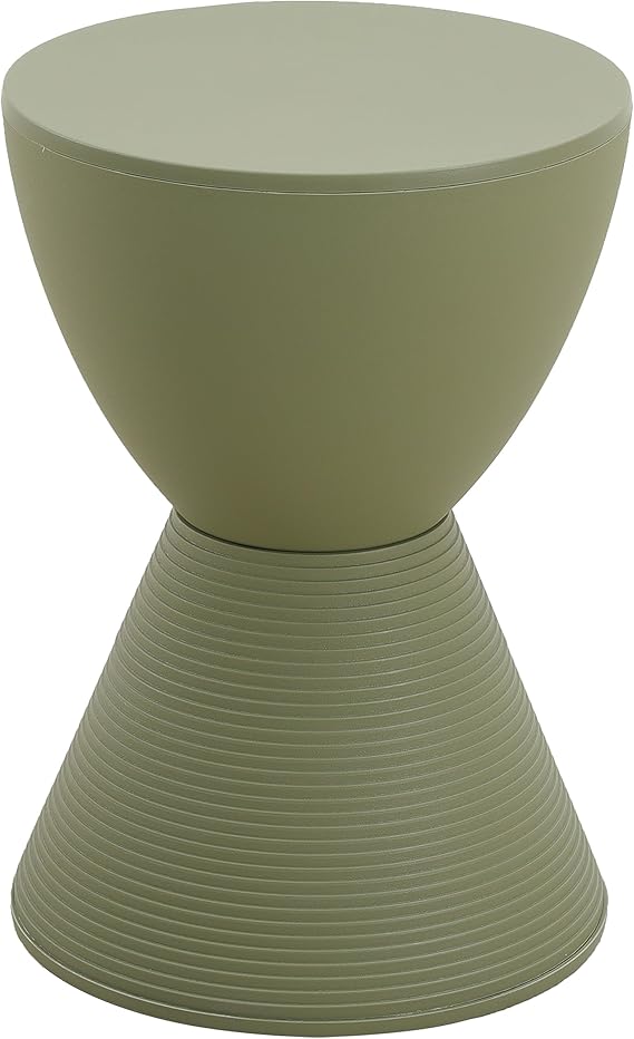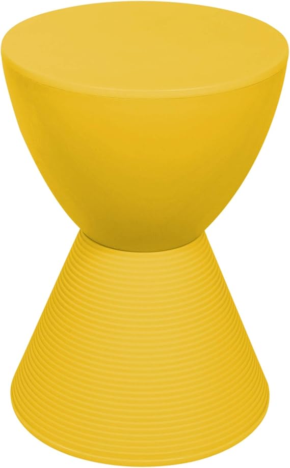 Crafted with weather-resistant materials, this versatile end table combines contemporary styling with practical functionality. The distinctive hourglass silhouette adds visual interest to any living space, patio, or deck area.
