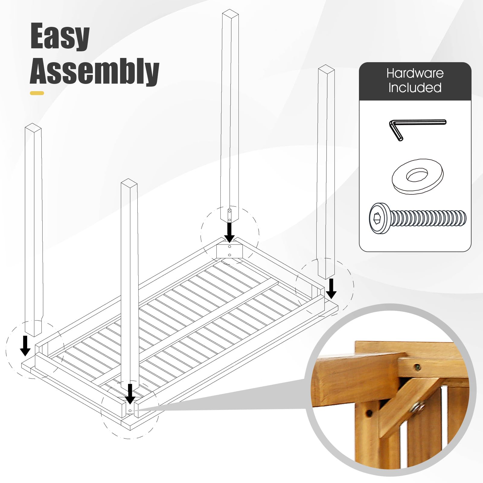 - Easy Assembly: Includes detailed instructions and all necessary hardware