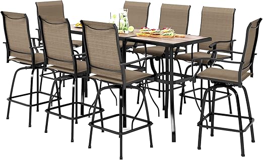 Elevate your outdoor entertaining space with this stylish bar height bistro table. Featuring a realistic wooden-like table top paired with a durable metal frame, this piece combines aesthetic appeal with lasting functionality. Perfect for patios, decks, balconies, and outdoor bar areas.