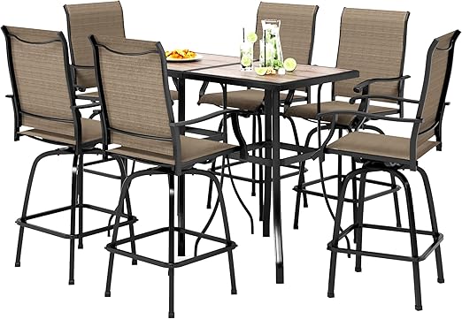 Outdoor Bar Height Bistro Table with Wooden-Like Top