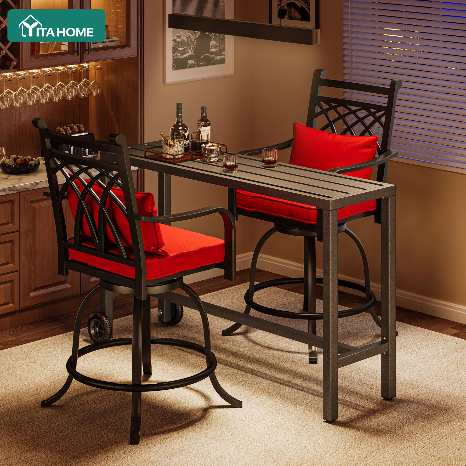 Outdoor Bar Table Rectangle Counter Height with Wheels