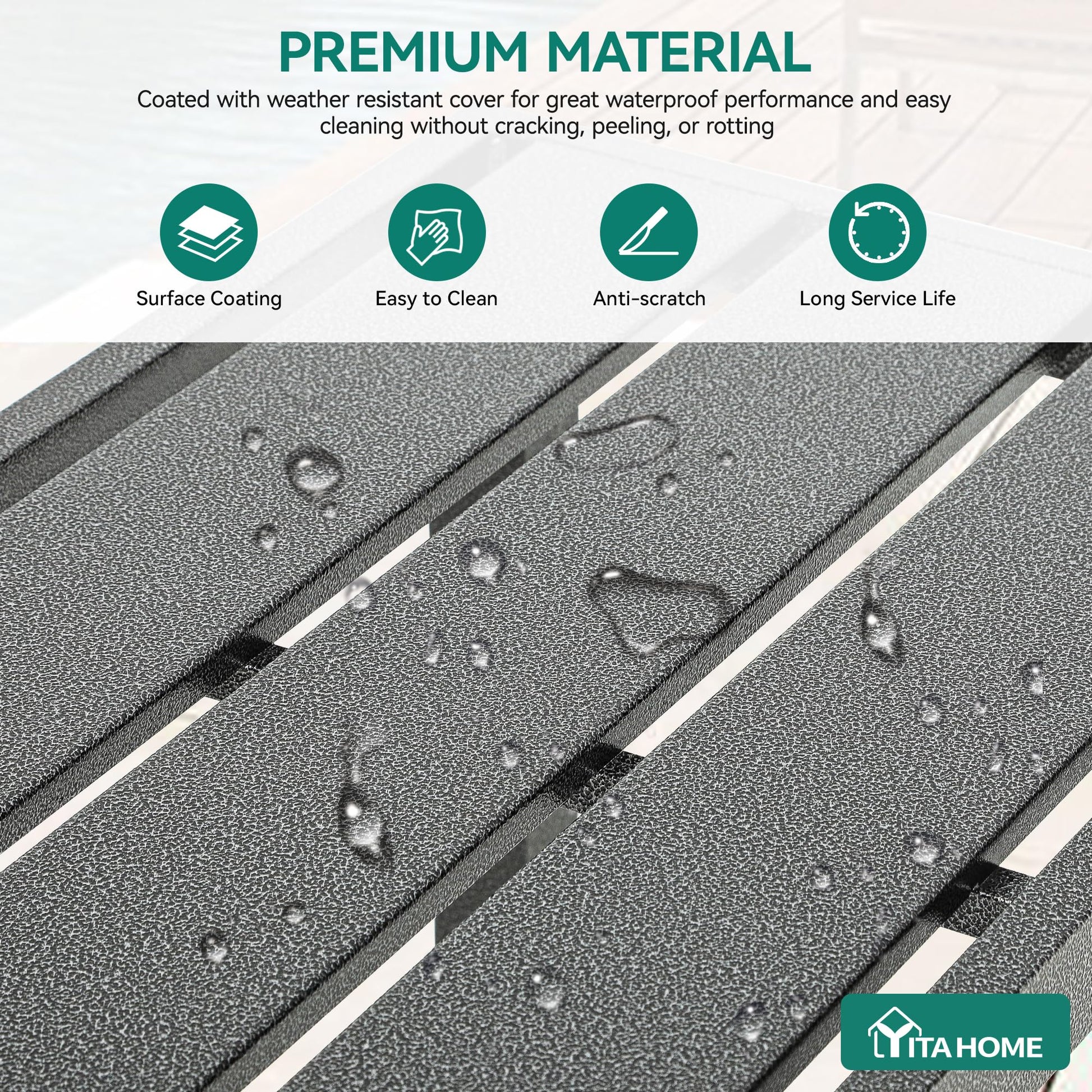 - Weather-Resistant: Iron plate with waterproof coating resists cracking, peeling, and decay when exposed to outdoor elements