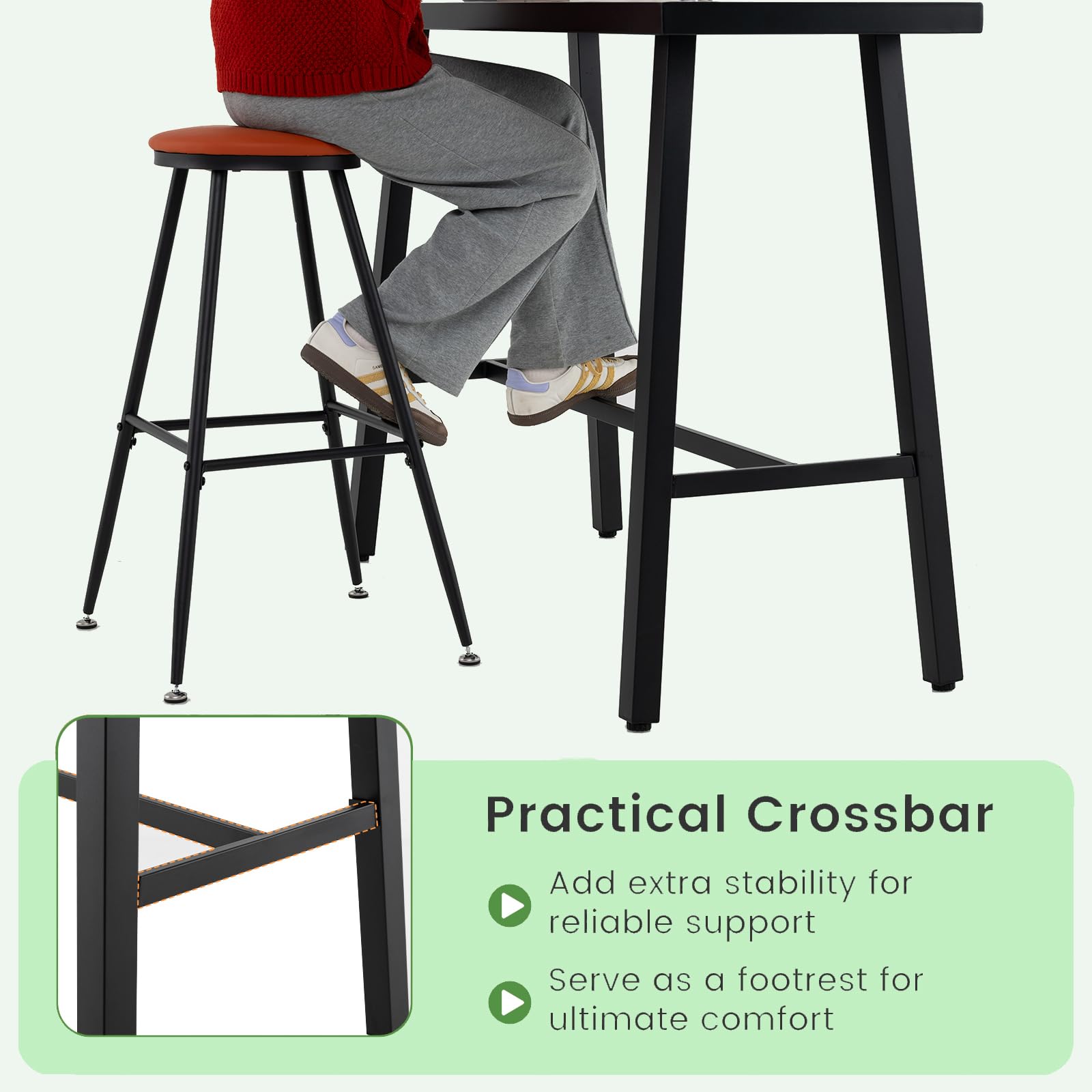 - Comfort & Stability: The bottom crossbar provides extra stability and doubles as a footrest, enhancing comfort during extended periods of sitting and chatting.