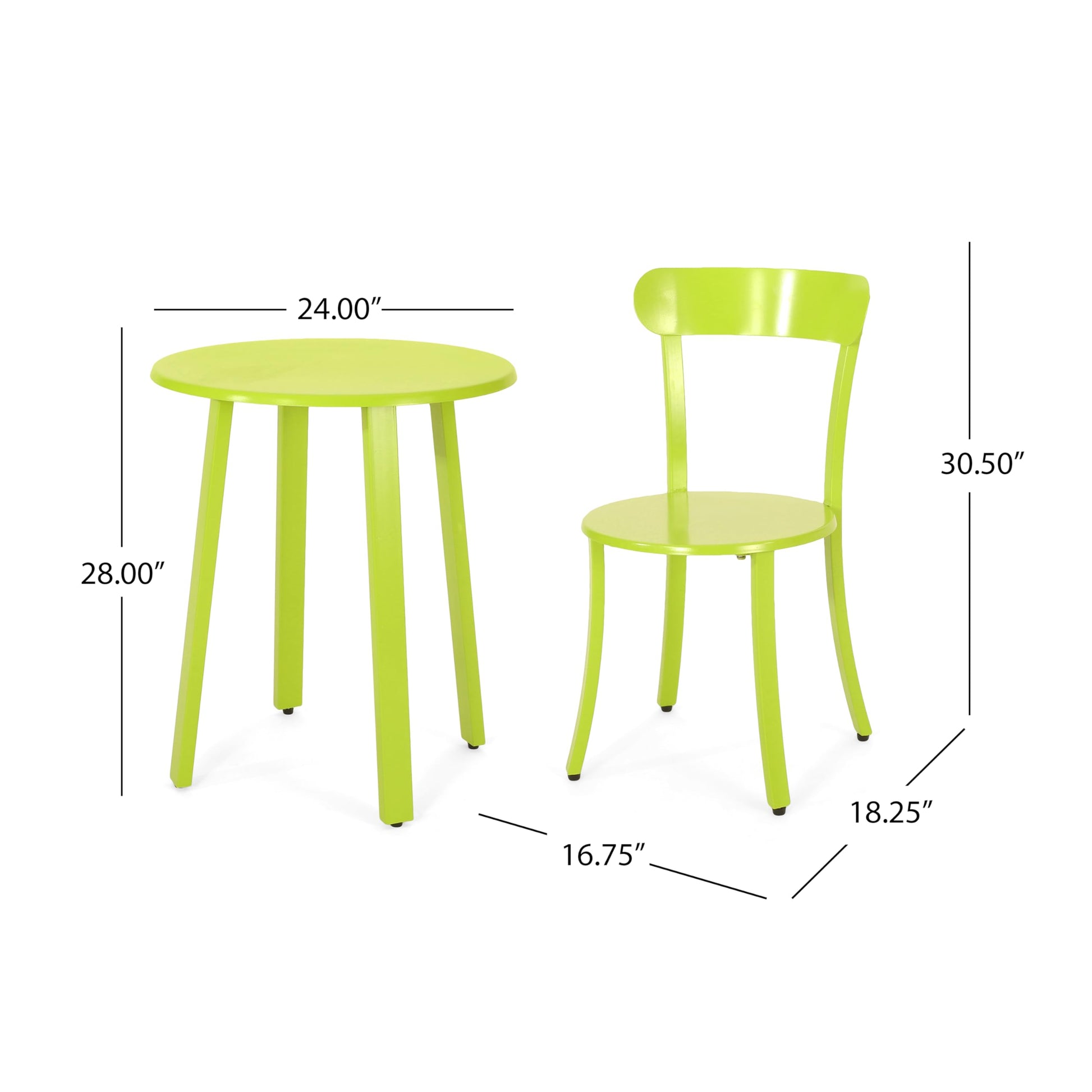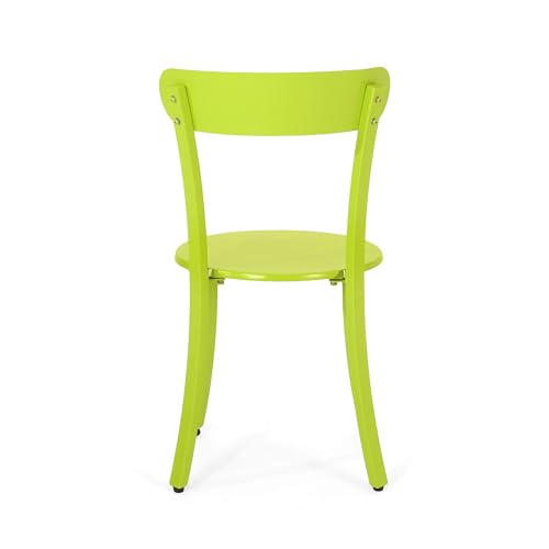 This elegant outdoor bistro set is perfect for intimate dining on your patio or garden. Crafted from durable iron with a rust-resistant e-coating, this 3-piece set includes two chairs and one table designed to withstand the elements while maintaining its vibrant matte lime green finish.
