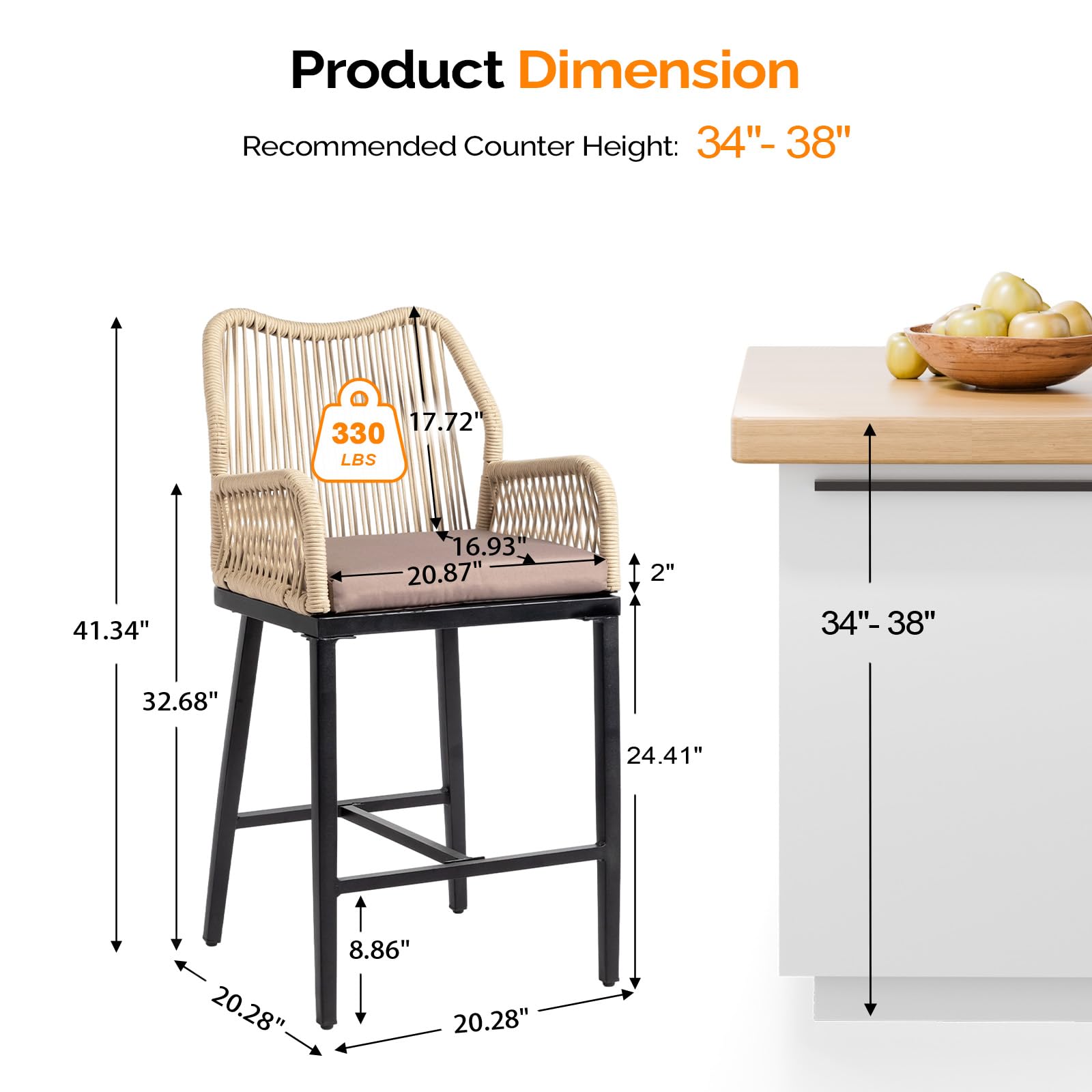 - Perfect Fit: 26.41" seat height (with cushion) designed for 34-38" standard counter heights