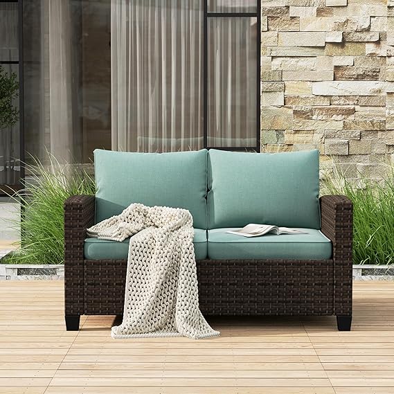 Outdoor Loveseat Patio Sofa - 2-Seat Wicker Couch with Waterproof Cushions