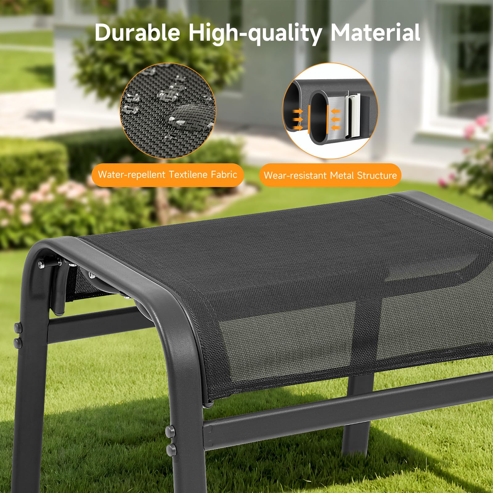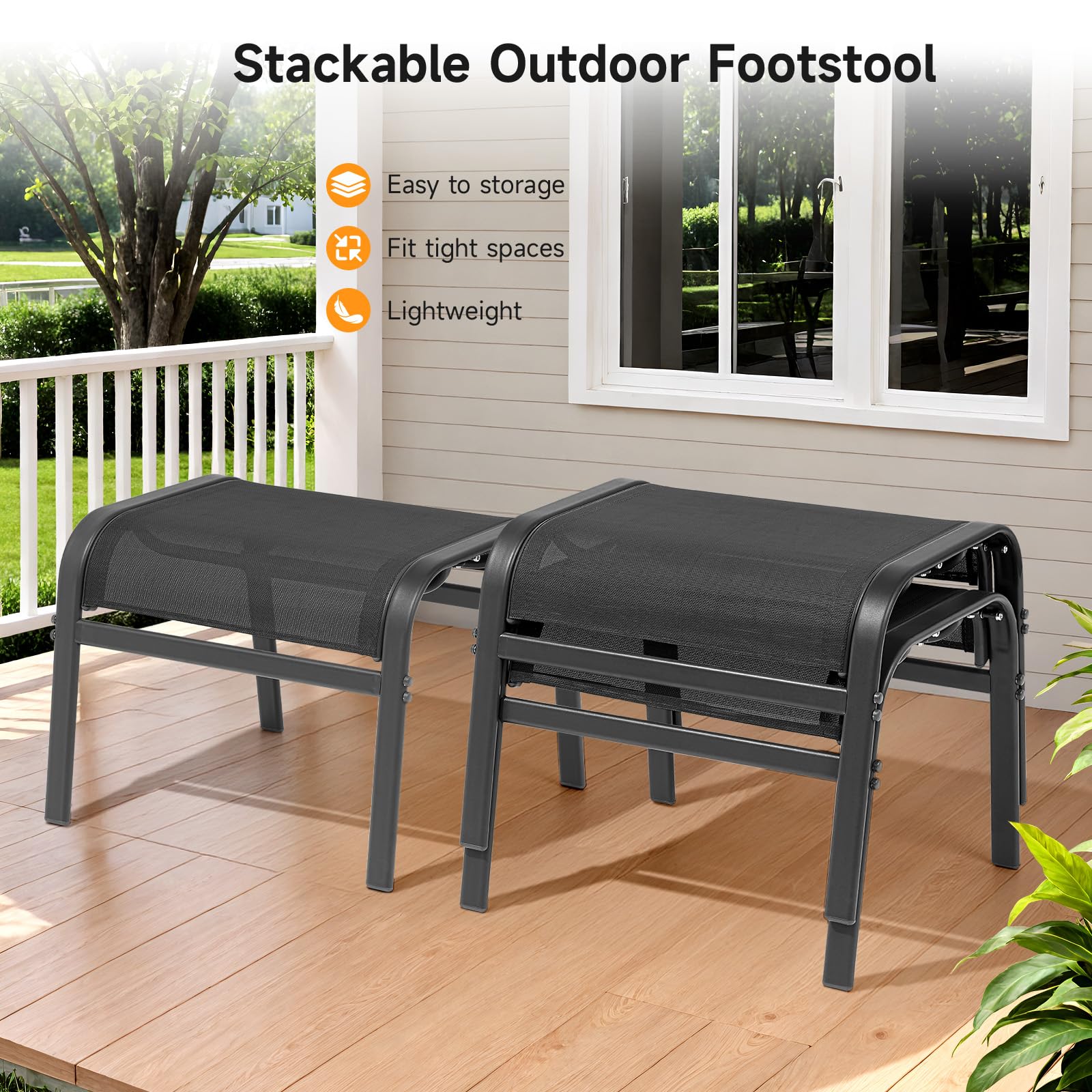 Elevate your outdoor relaxation with this versatile ottoman footrest set. Designed for durability and comfort, these footstools feature premium textilene fabric stretched over a stable metal frame, delivering both style and functionality to your outdoor living space.